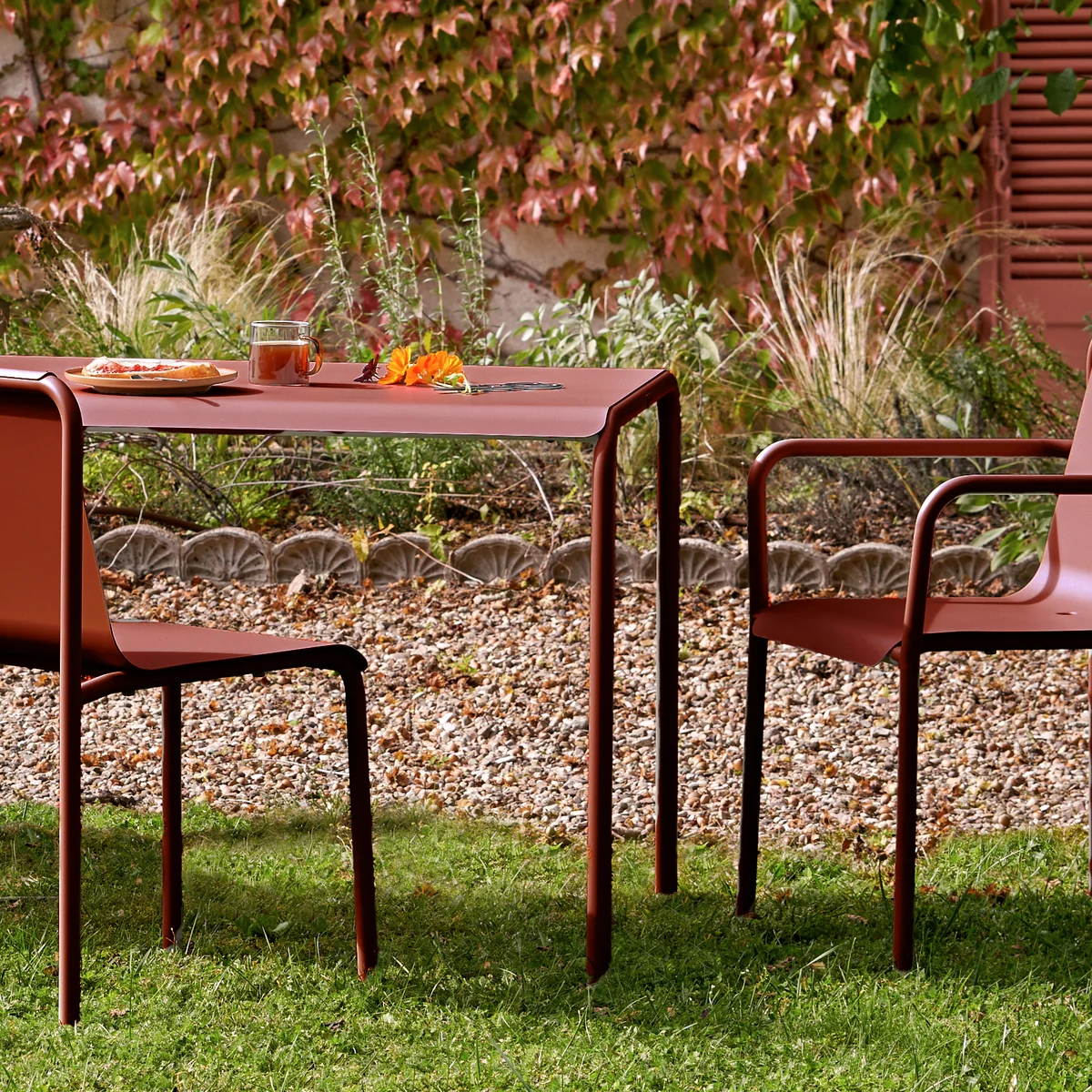 Grâce à ses différentes tailles, la Panorama table de jardin convient aussi bien aux petits balcons qu'aux terrasses spacieuses et peut accueillir de 2 à 8 personnes. Les perforations en relief apportent non seulement un accent graphique, mais permettent également à l'eau de pluie de s'écouler rapidement. Les patins réglables sur les pieds garantissent une bonne stabilité même sur un sol inégal et rendent la table idéale pour une utilisation durable à l'extérieur.