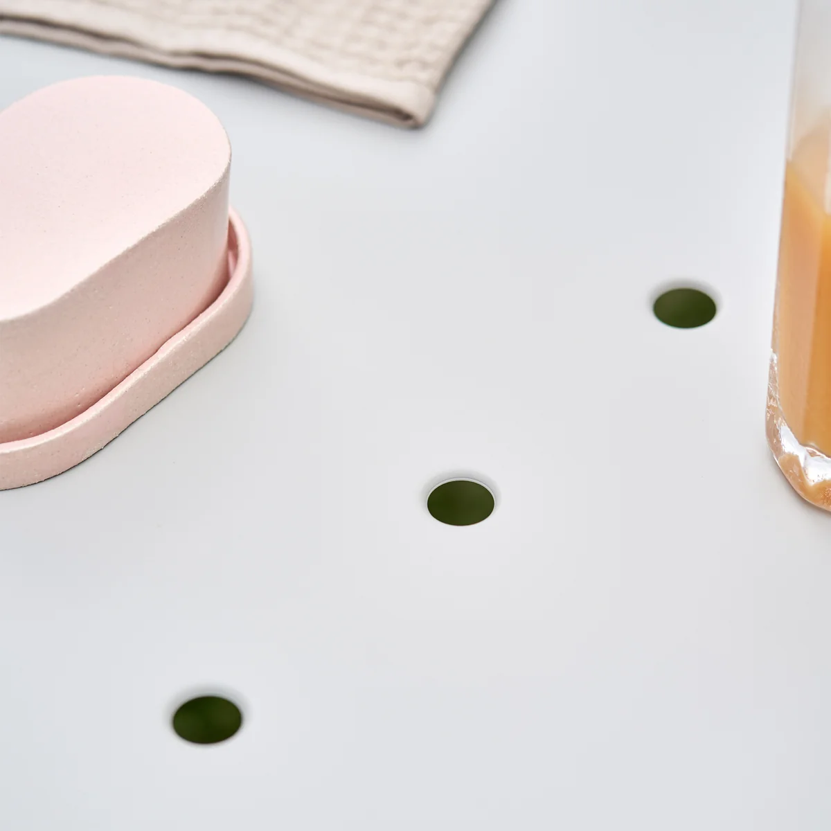 - Plateau de table perforé avec évacuation de l'eau et pieds réglables