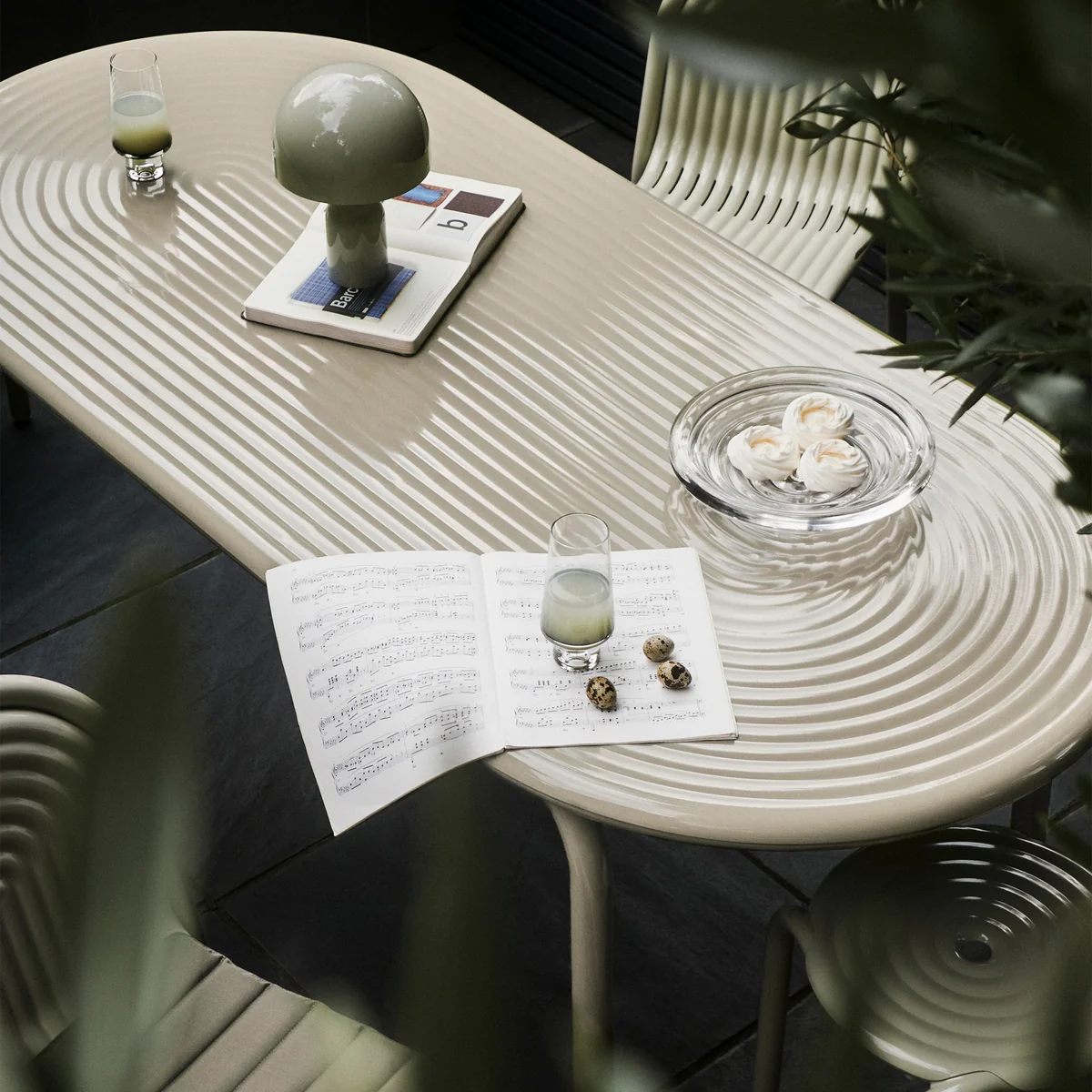 La collection GROOVE collection, affinée par plus d'une décennie de recherche intensive, comprend des meubles polyvalents tels que des chaises, des tabourets et des coussins d'extérieur qui permettent un empilage et un stockage efficaces. Disponible dans les teintes élégantes Moss et Putty , la table s'intègre parfaitement Groove La table de jardin s'intègre parfaitement dans les aménagements extérieurs les plus divers et apporte une touche de style à votre espace extérieur.