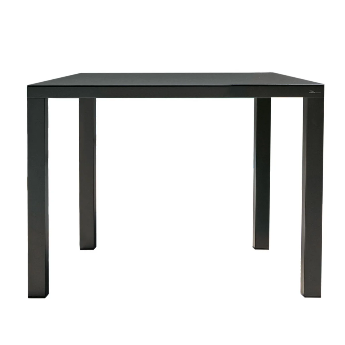 La table est en aluminium thermolaqué. Il est disponible en différentes couleurs et peut ainsi remplir sa fonction discrètement ou devenir un accroche-regard dans le jardin dans une couleur forte.