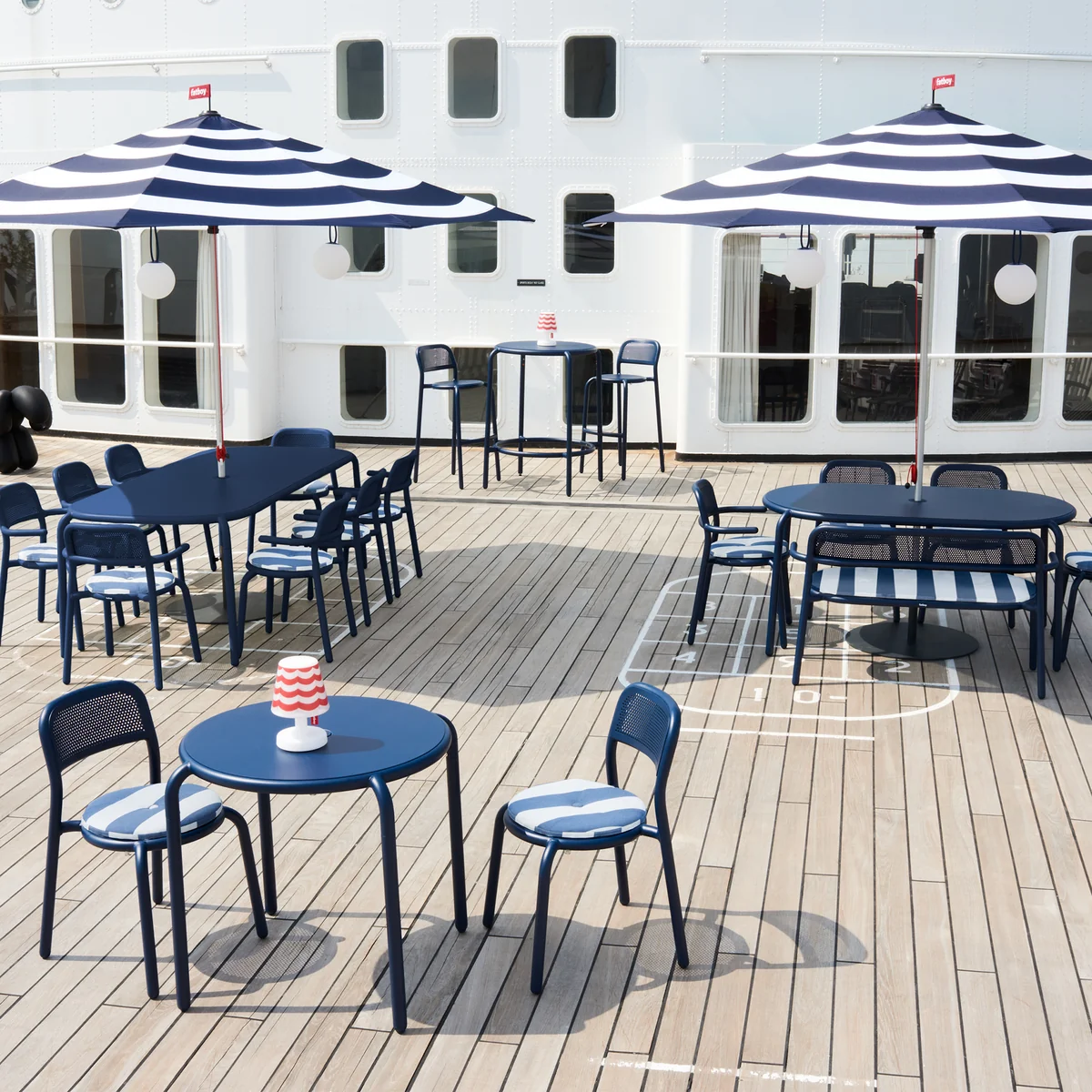Fatboy ne serait pas Fatboy sans un détail raffiné dans son design : Toní Tavolo dispose d'une ouverture au milieu du plateau de table, qui peut accueillir des parasols ou des bougeoirs du fabricant finlandais. Un bougeoir pour une bougie est inclus dans la livraison.