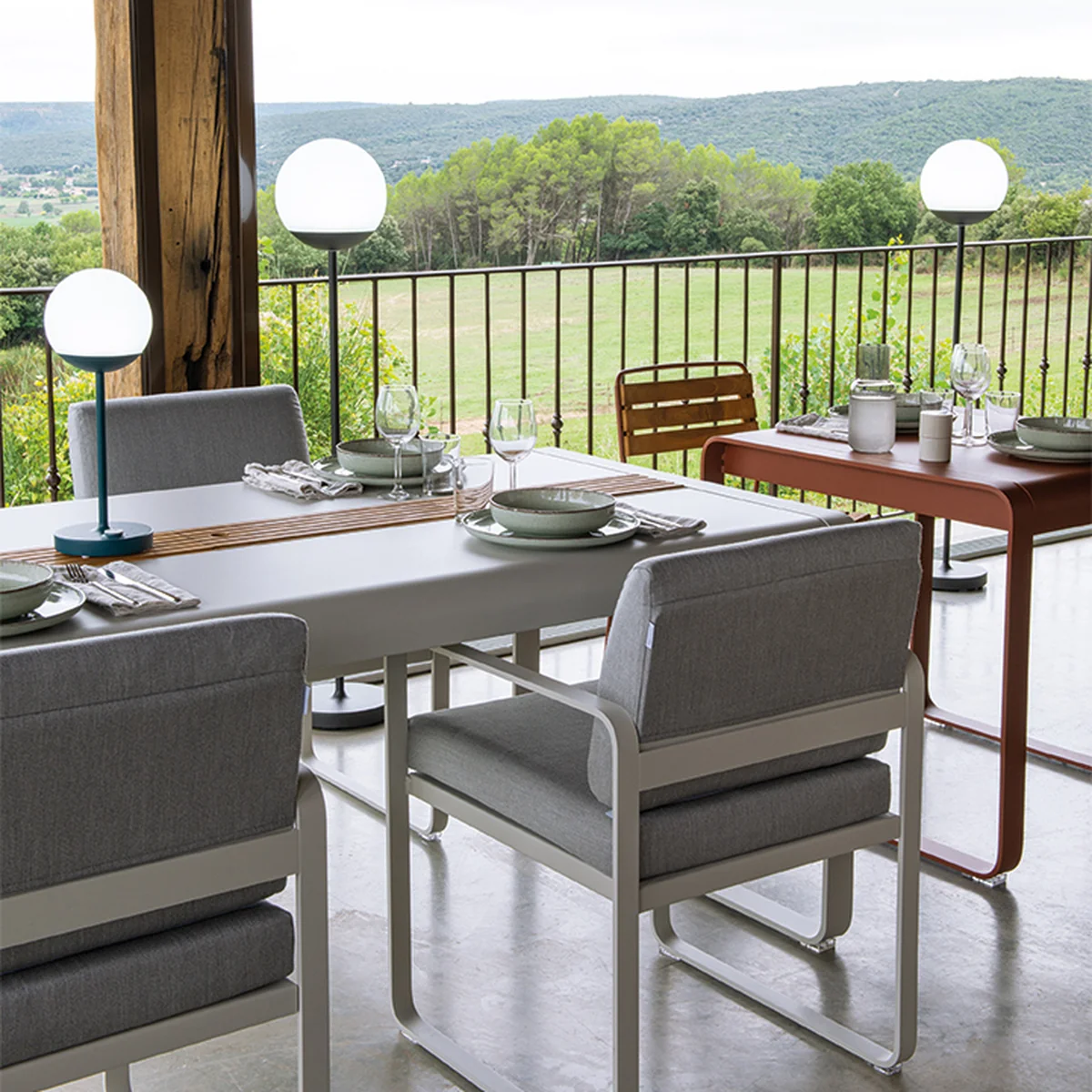 Le studio de design parisien Pagnon Pelhaître a conçu la collection. Bellevie a conçu la collection pour Fermob . Ainsi, l'art de vivre à la française vient tout seul : lors de la conception, il était important que Bellevie de véhiculer une atmosphère chaleureuse et de la joie, même visuellement. La table Bellevie table peut accueillir confortablement 8 à 10 personnes et s'accorde parfaitement avec la Bellevie banc de Fermob .