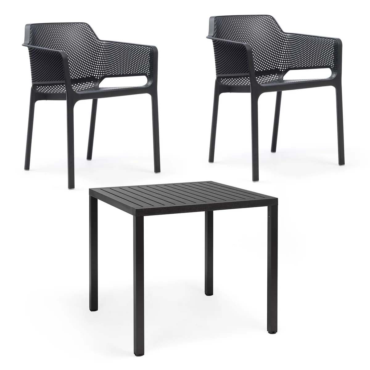 La chaise à accoudoirs Net conçue par Raffaello Galiotto est disponible en différentes couleurs à effet mat, qui se combinent parfaitement entre elles ainsi qu'avec d'autres meubles de jardin de Nardi . Les coussins assortis sont disponibles séparément.