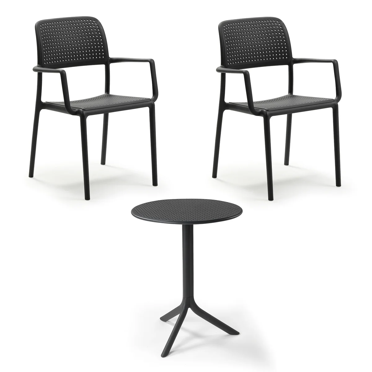 La table de bistrot Step table de Nardi convient parfaitement à l'utilisation dans le jardin et convainc par ses propriétés de résistance aux intempéries. La table de jardin est fabriquée en fibre de verre polypropylène teintée dans la masse, qui est robuste et résistante aux UV. Grâce aux fines perforations sur la surface, l'eau de pluie s'écoule facilement et ne forme pas de flaques.