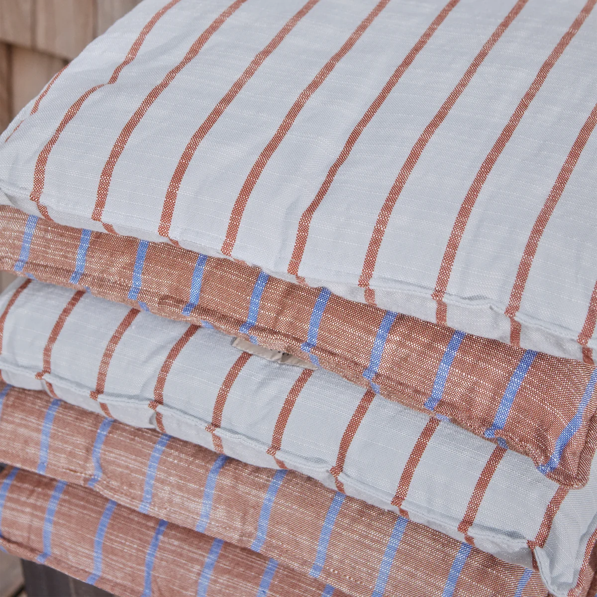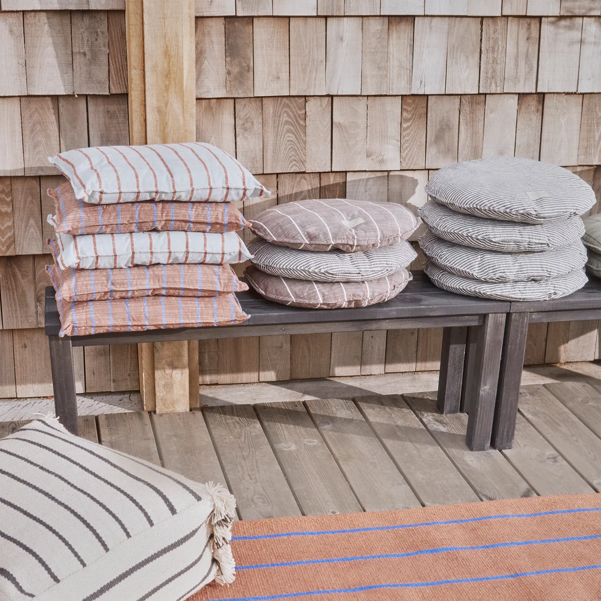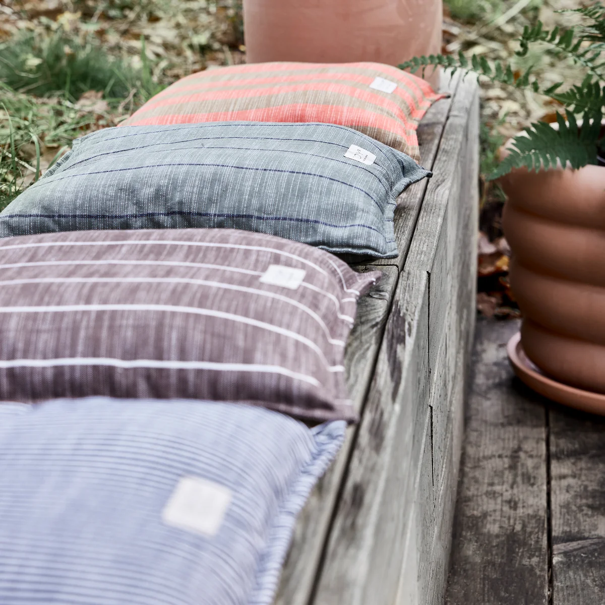 Les coussins Kyoto Outdoor de OYOY en polyester recyclé sont parfaits pour la terrasse ou le balcon. Le coussin, disponible en différentes couleurs, a un design simple et reconnaissable avec des rayures, ce qui crée une expression confortable et personnelle.
