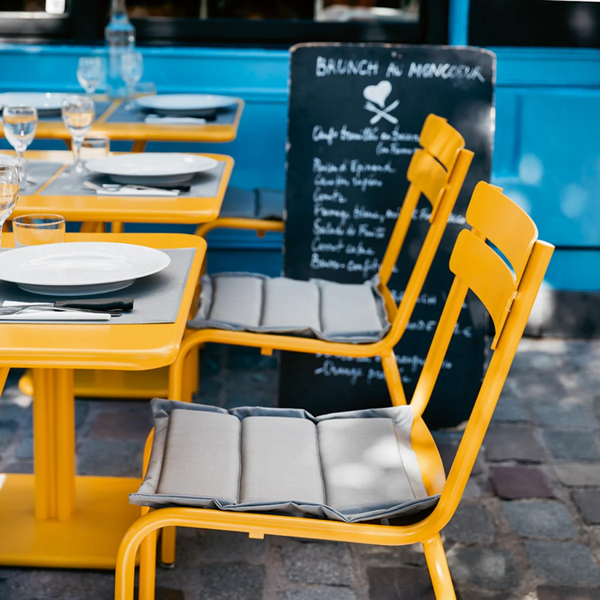 Les chaises Luxembourg Les coussins d'assise sont moulés de manière à s'adapter parfaitement au design classique des meubles de jardin de Fermob . Les coussins d'assise sont remplis de mousse pour un confort optimal avec une surface d'assise douce et confortable.