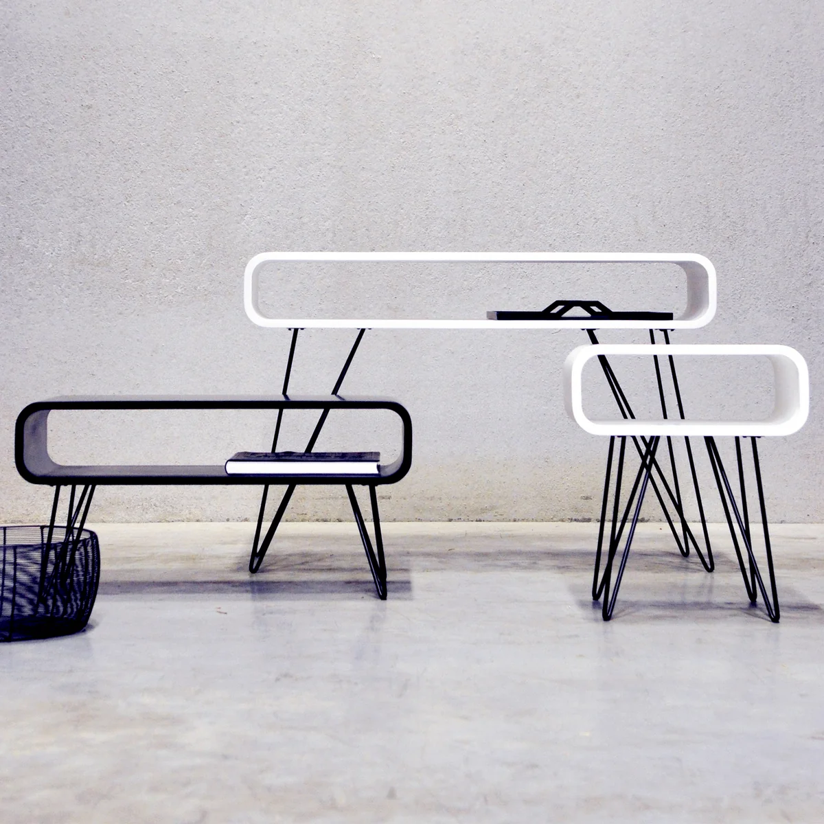 Alors que la forme volumineuse du corps de la Metro Sofa Table Inspirés du design des années 50 et 60, les quatre pieds métalliques élancés donnent à l'ensemble un accent résolument moderne. Le plateau de table, cependant, n'offre pas seulement un aspect unique, mais est aussi un corps creux arrondi, dont l'intérieur offre un espace de rangement pour les magazines et les livres, les snacks, les jeux et les petits accessoires.