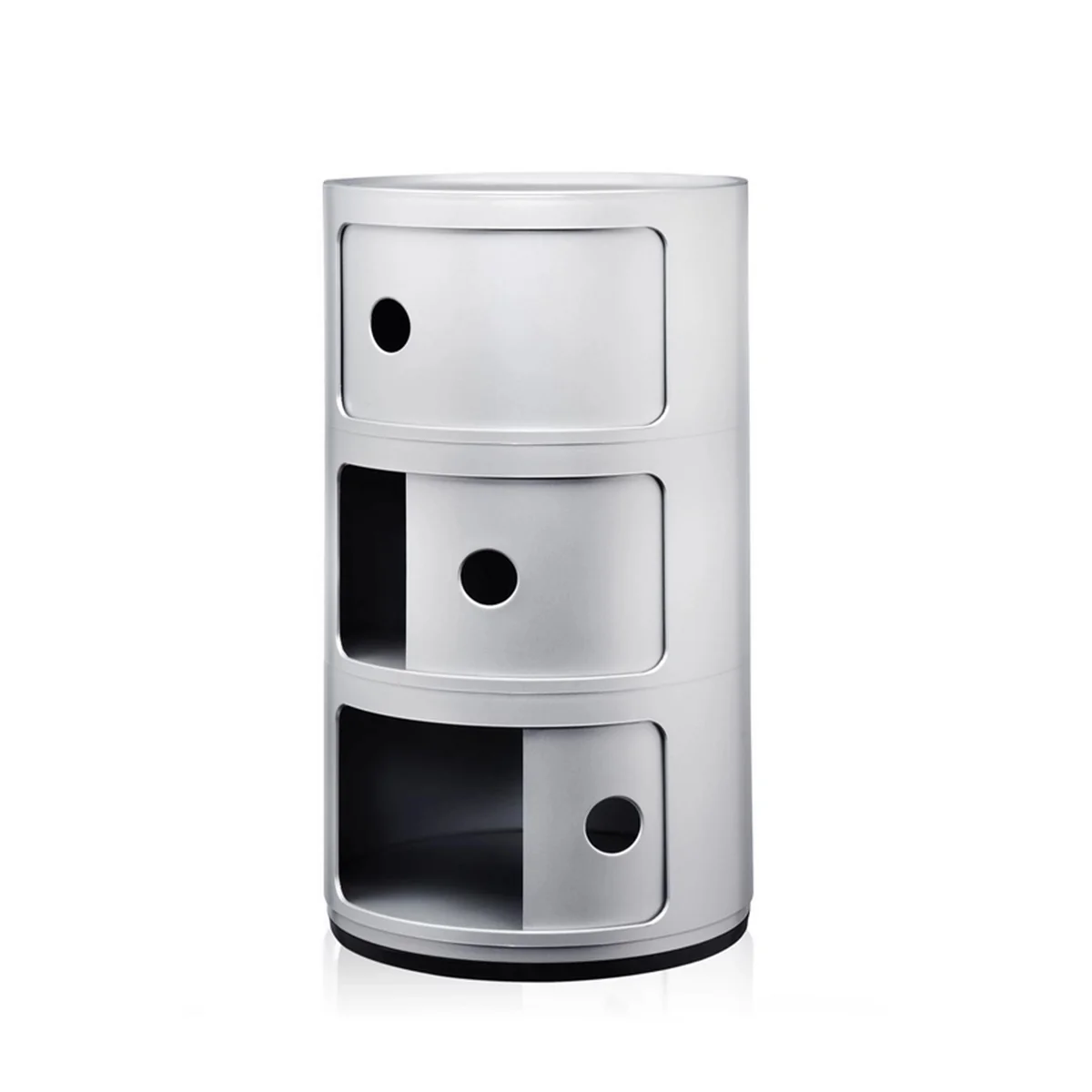 Les Componibili existent en version ronde ou carrée et ils peuvent également être livrés sur roulettes. Flexibles, fonctionnels, pratiques : les Componibili sont un classique du design avec une tradition de trente ans, qui a obtenu beaucoup de reconnaissance pour la concision et l'innovation de son design et qui a depuis longtemps roulé dans l'exposition permanente du Museum of Modern Art de New York et du Centre George Pompidou à Paris.