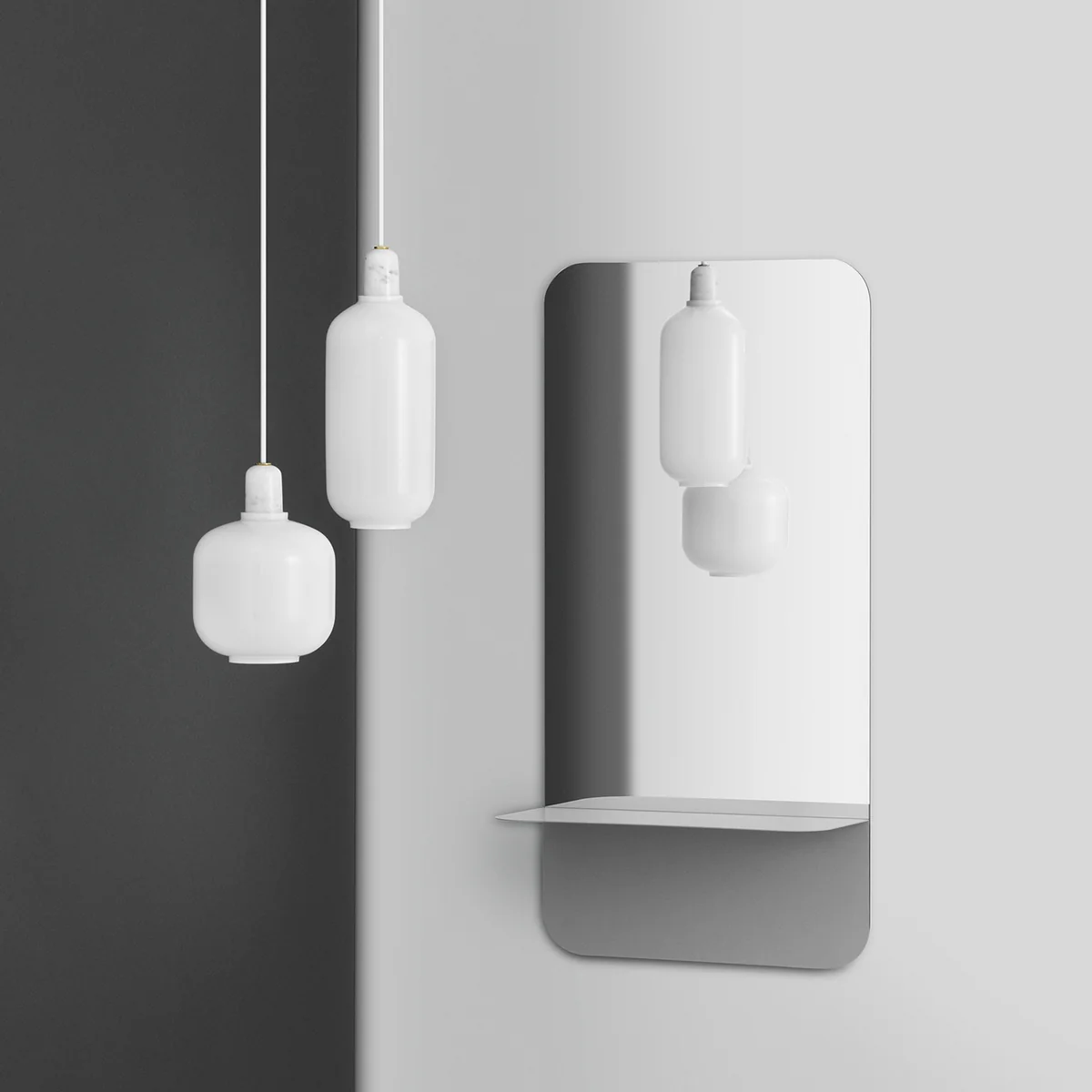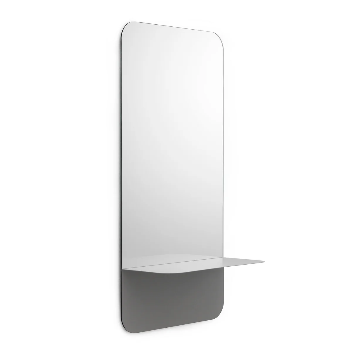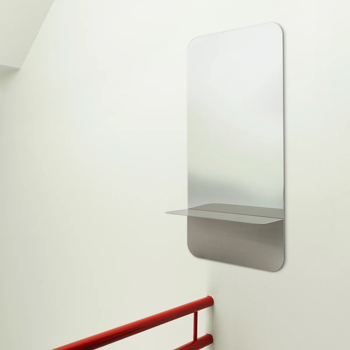Le modèle vertical Horizon miroir de Normann Copenhagen a été conçu par Kaschkasch Cologne et est un miroir mural avec une étagère en acier intégrée. L'étagère n'est pas seulement un point fort optique, mais aussi pratique pour poser des clés, des accessoires ou du parfum.