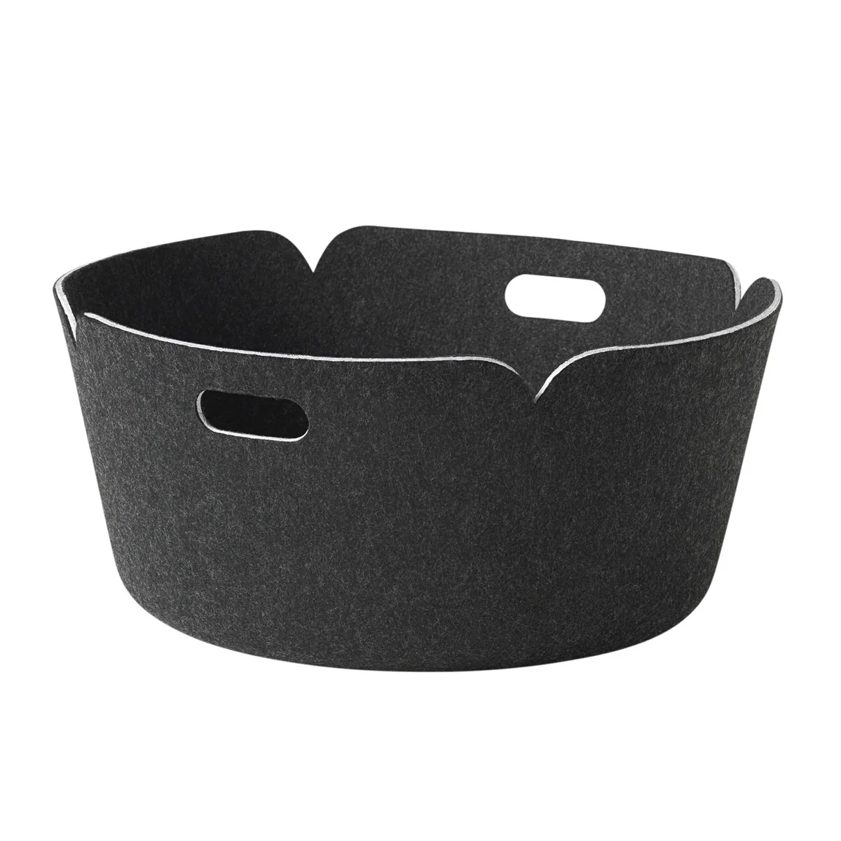 Le panier rectangulaire iconique Restore panier de rangement de Muuto jouit déjà d'une grande popularité. La série a maintenant été complétée par un panier de rangement rond.