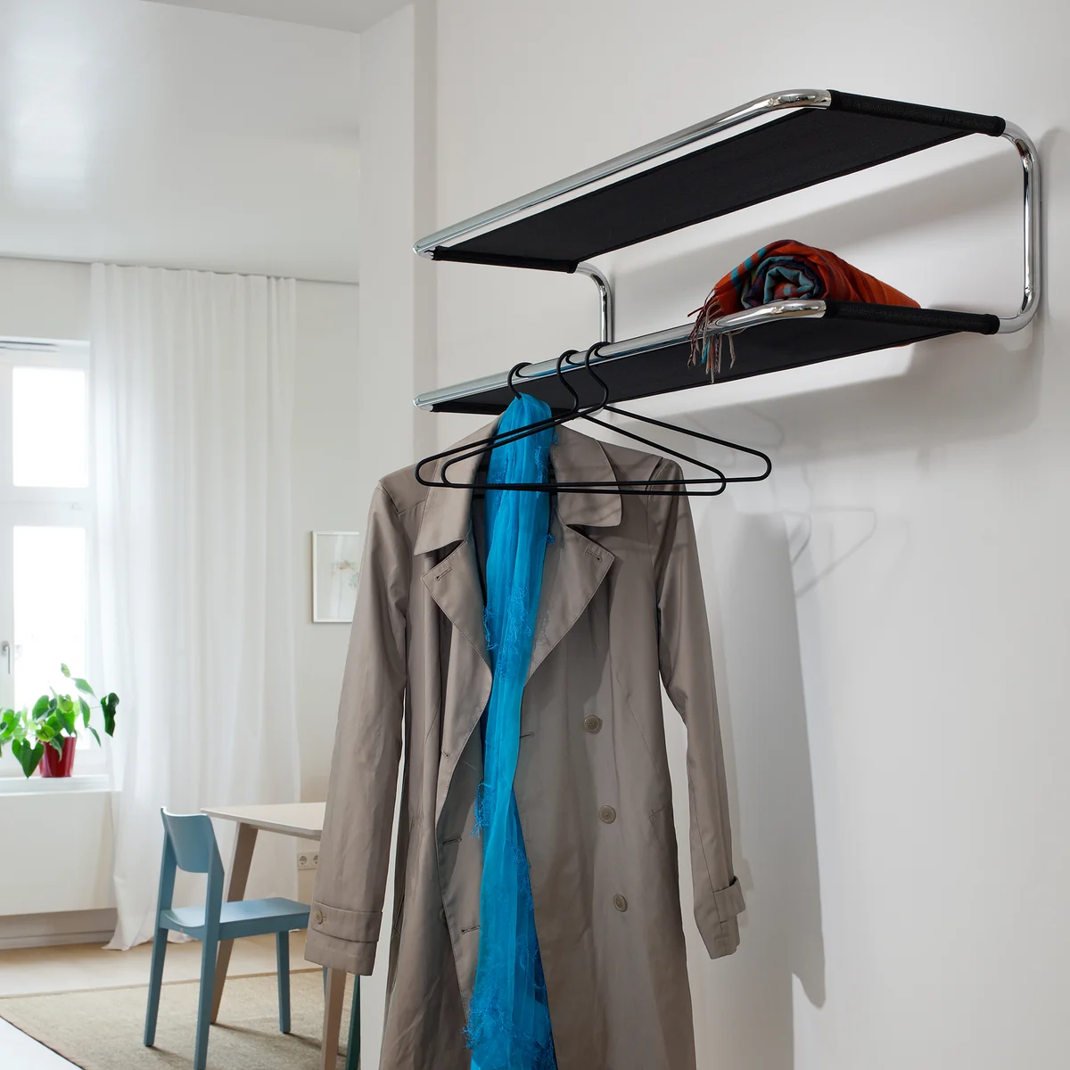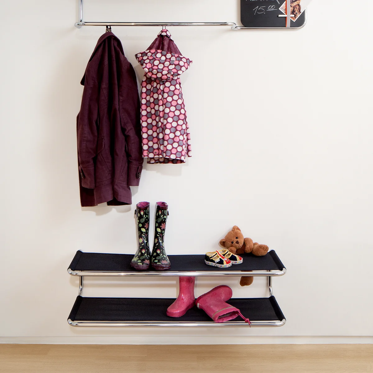 Le module de garde-robe S 1521 par Thonet est le meuble à chaussures assorti à l'élégant portemanteau en tubes d'acier et résille solide. Un rangement à chaussures qui a du style, parfait pour le couloir.