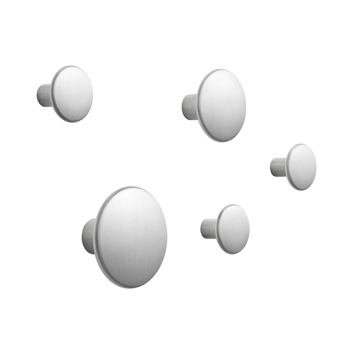 Les crochets muraux "The Dots Metal" de l'ensemble de 5 pièces de Muuto font partie de la collection Dots du duo norvégien Tveit & Tornøe, qui est reprise par Lars Tornøe. La famille des crochets muraux de différentes tailles est un enrichissement pour tout mur de couloir, de cuisine ou de chambre à coucher.