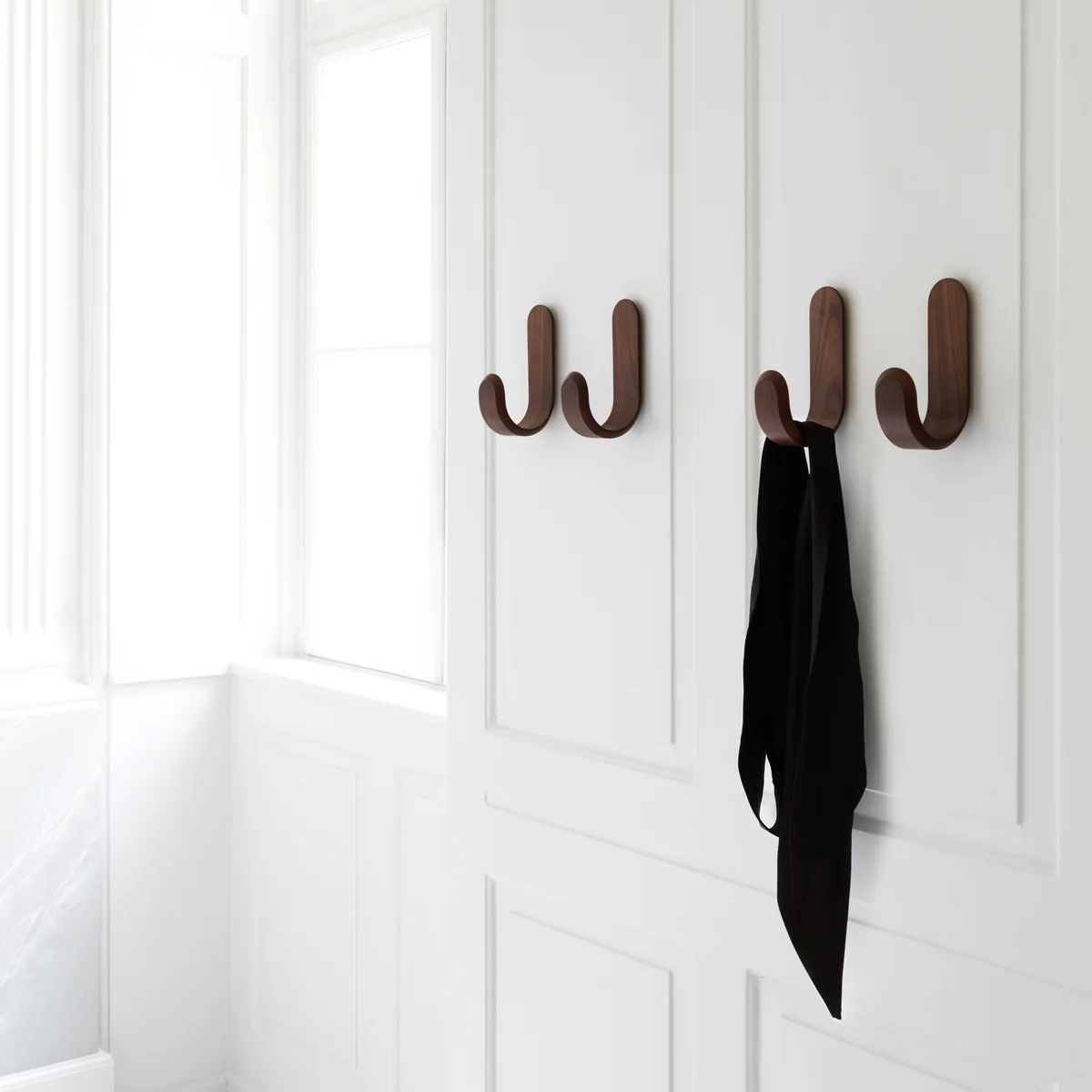Le designer danois Peter Johansen a créé un crochet en bois en forme de lettre J pour Normann Copenhagen . Le Curve crochet mural est de forme classique et rappelle immédiatement et intuitivement sa fonction. L'arrondi à facettes donne à la forme simple un raffinement particulier et au design quelque peu surdimensionné une belle précision. Curve est un crochet mural dans sa forme la plus traditionnelle et la plus symbolique. Il supporte avec aisance plusieurs objets, comme des vêtements, des sacs et des accessoires.