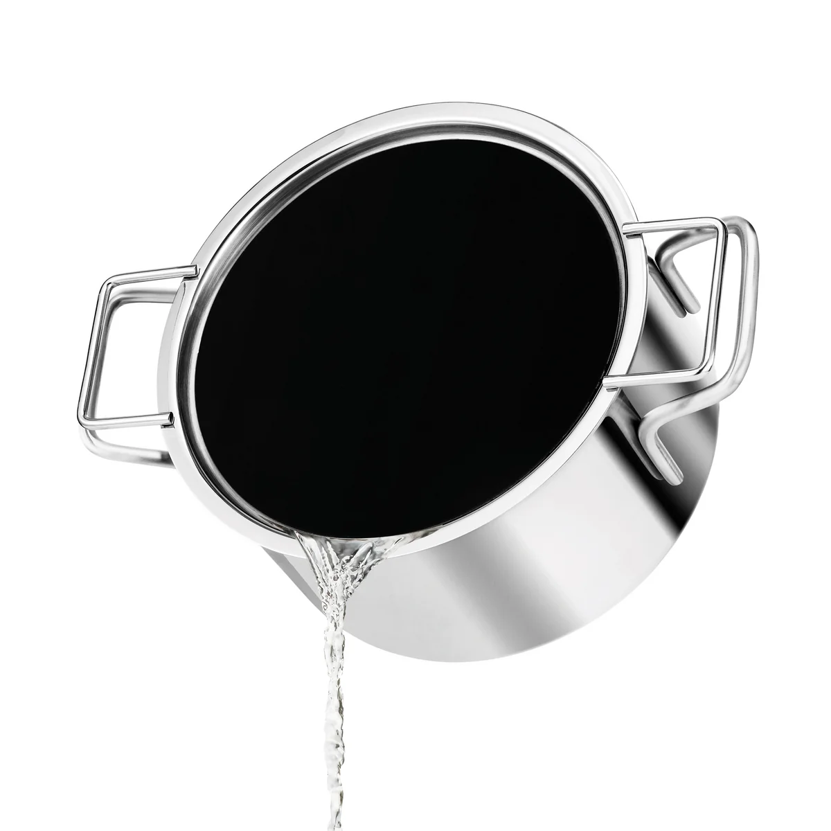 Chaque couvercle a une fonction spécifique. Le couvercle passoire est par exemple parfait pour la préparation des pâtes et est particulièrement bien adapté au lot de casseroles Stainless Steel avec égouttoir à pâtes. Sont également disponibles des couvercles classiques en verre et en acier inoxydable, adaptés aussi bien aux petites (Ø 16 cm) ou qu'aux plus grosses (Ø 20 cm) casseroles et poêles. Les couvercles en acier inoxydable séduisent par leurs poignées qui ne chauffent pas, si bien que le couvercle peut être posé ou enlevé sans manique pendant la préparation et la cuisson des repas.