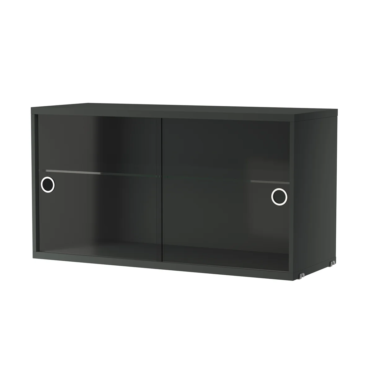 Le module de vitrine de String est une belle façon de présenter des objets décoratifs, tels que des bols, des livres et de la vaisselle dans un module d'armoire à l'intérieur du String présenter dans le système. Les objets sont protégés derrière une porte en verre et sont présentés de manière décorative.