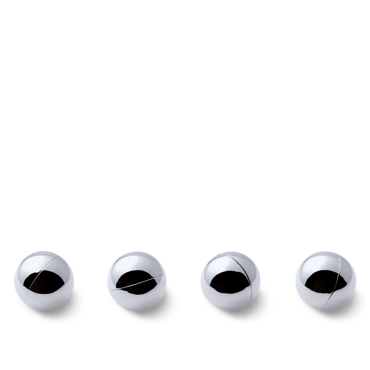 Les poids pour nappe aimantés Gravity Ball de Philippi maintiennent votre nappe sur la table en cas de vent et d'intempéries et font en sorte qu'aucune rafale de vent ne vienne ruiner vos efforts ou renverser votre café. Les boules en nickel se positionnent aux quatre coins de la nappe, l'empêchant ainsi de s'envoler.