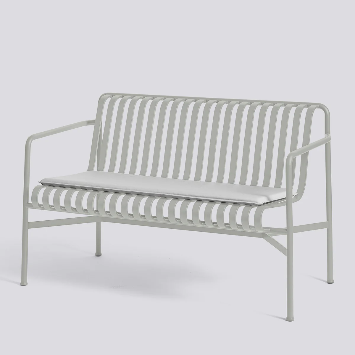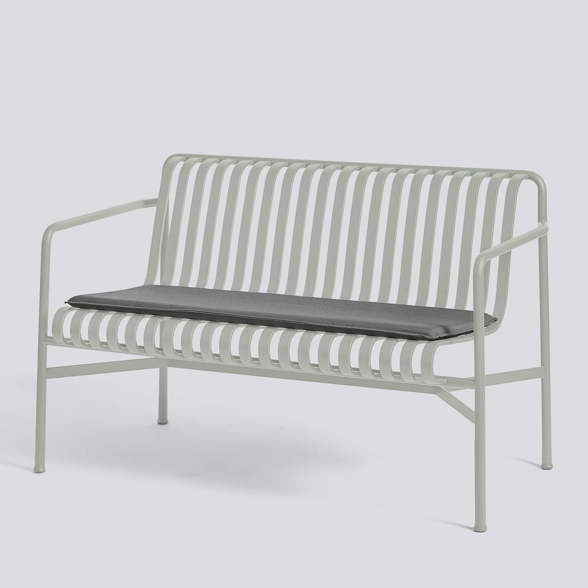 Avec le Palissade Seat Cushion d'Iskos-Berlin pour HAY. Palissade Dining Bench de la collection du même nom d'Erwan & Ronan Bouroullec est encore plus confortable. Le coussin d'assise, disponible en différents coloris, est composé d'un rembourrage en mousse de 15 mm d'épaisseur et d'une housse en polypropylène. Cela rend le coussin résistant aux intempéries, imperméable et robuste. Même les rayons du soleil ne peuvent pas décolorer le coussin.