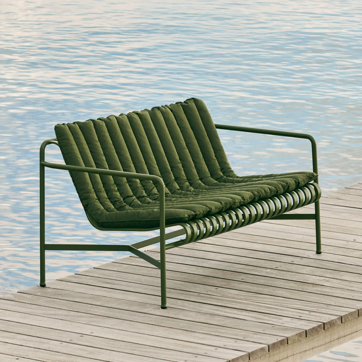 Le Palissade Soft Quilted Cushion de HAY améliore à la fois le confort et la fonctionnalité de la collection de chaises et de fauteuils. Palissade de la collection de chaises et de bancs et est formé de manière à s'adapter à la plupart des Palissade -s'adapte à tous les modèles. Le coussin en tissu hydrofuge est doté d'un dessous antidérapant et est rempli d'une combinaison souple de miettes de mousse et de billes de fibres de silicone. Le tissu présente une résistance élevée aux UV, ce qui lui permet de résister à la lumière et de conserver ses couleurs. Disponibles en quatre couleurs, les coussins peuvent être utilisés toute l'année.