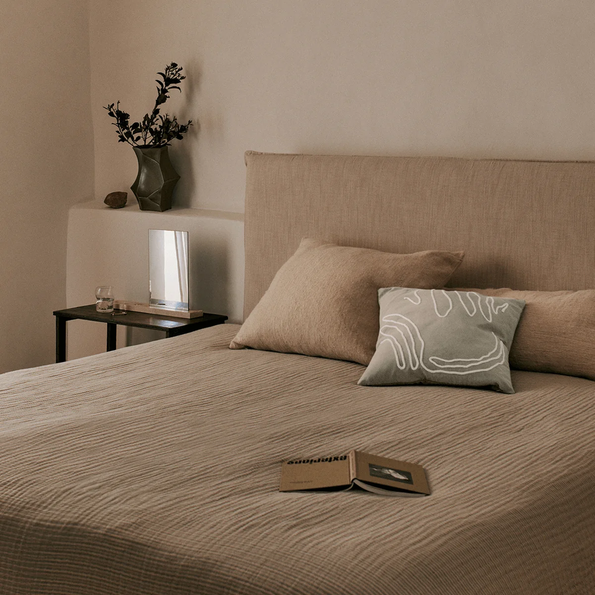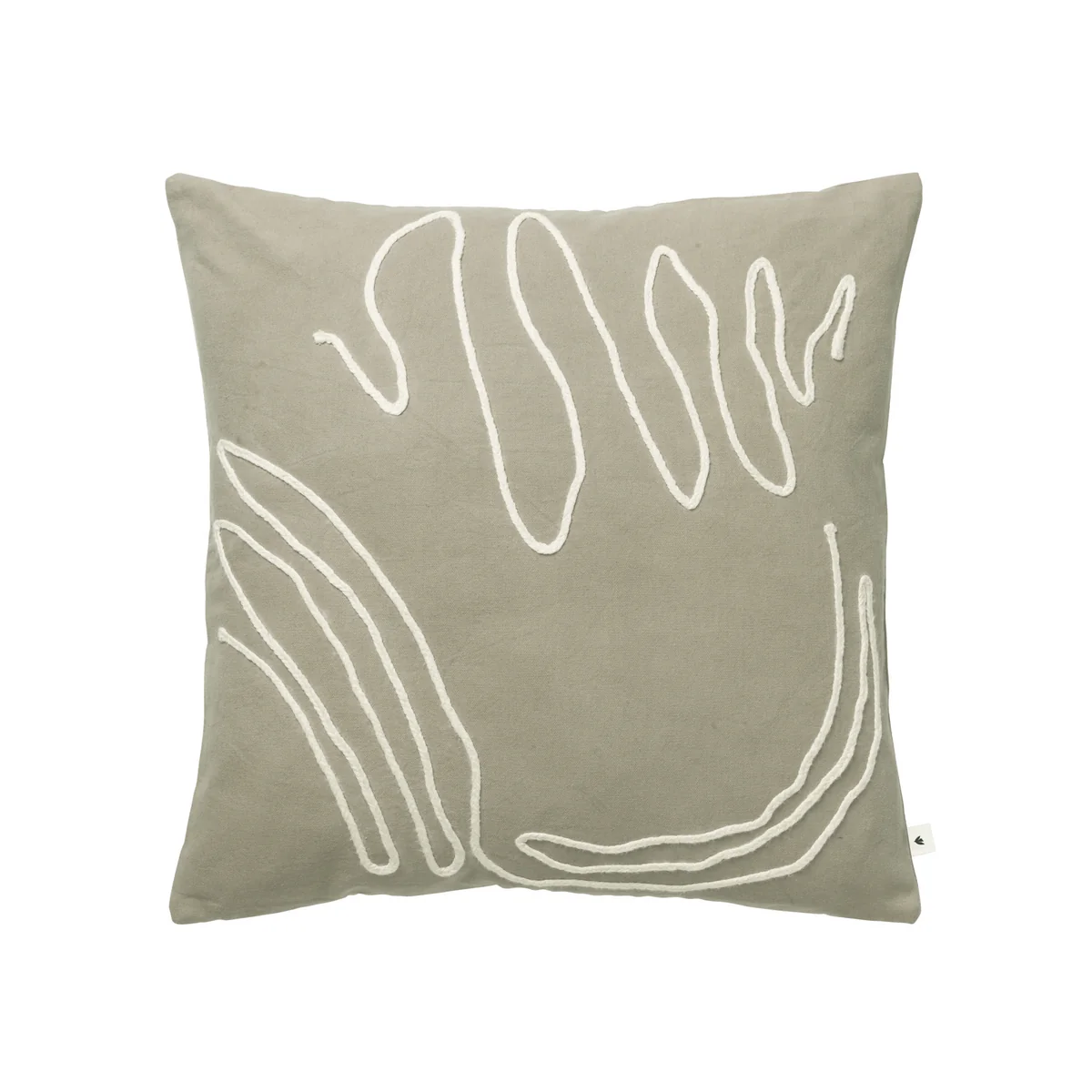 Le coussin Jot, fabriqué à partir de 100 % de coton certifié GOTS, reflète les douces traces des courants d'eau et des paysages côtiers. Le tressage contrasté du coton, réalisé à la main, est brodé avec art sur une toile de coton texturée et confère au design une profondeur tactile.