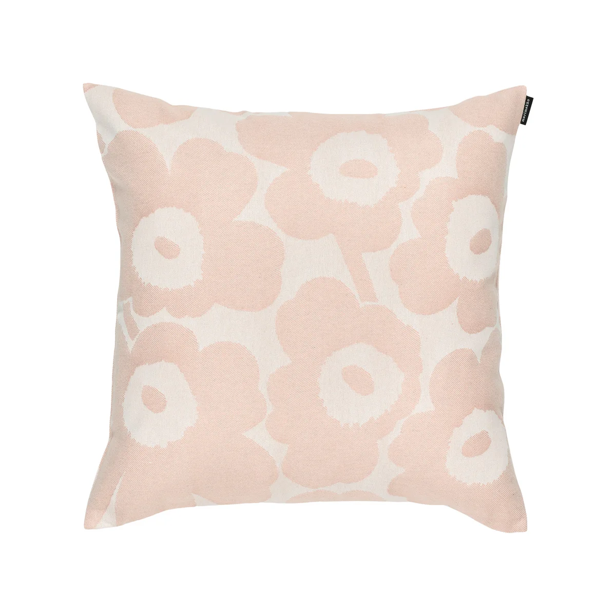 Pieni Unikko est une version plus petite du célèbre motif Unikko, créé par Maija Isola en 1964 pour Marimekko . Pour Pieni Unikko (Kristina Isola, la fille de l'icône du design finlandais, a adapté le motif floral à une échelle plus petite. Cela permet à l'imprimé floral de déployer tout son effet sur la taie d'oreiller.