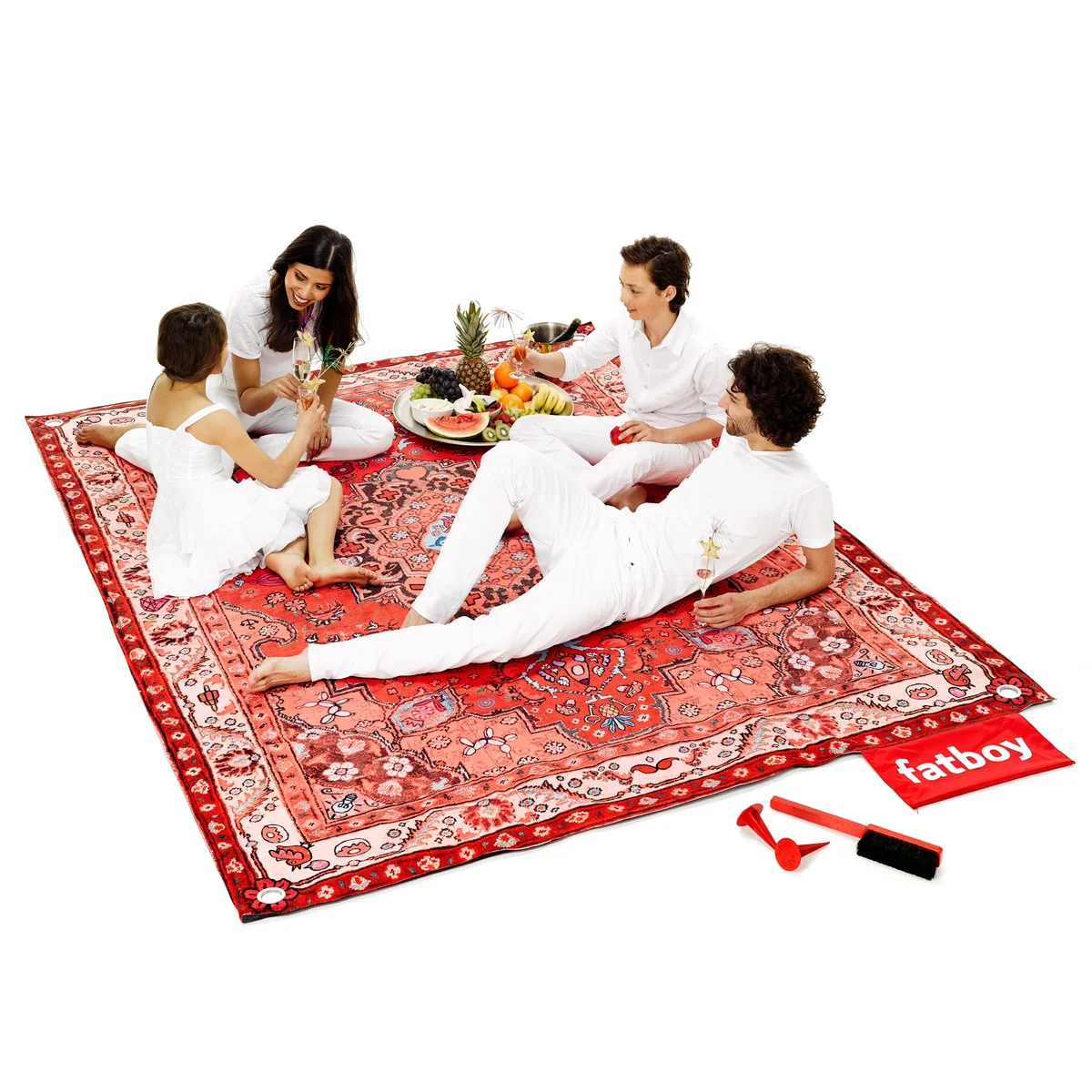 Le motif spécialement conçu pour Picnic Lounge développé par Fatboy ressemble à première vue à un tapis persan classique. Toutefois, ce motif ne semble être que traditionnel, car en y regardant de plus près, vous découvrirez de nombreux détails originaux dans le motif unique Fatboy