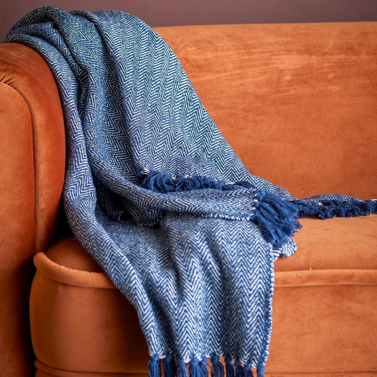 La couverture Herringbone de Bloomingville Creative Collection allie durabilité et design. Elle est tissée en coton recyclé et présente un motif de feuilles décoratif et graphique dans des tons doux. Les franges décoratives sur les bords lui confèrent un look décontracté. Parfait comme plaid ou jeté de canapé, il assure un confort et une ambiance élégante - et ce, tout à fait dans l'esprit d'un habitat respectueux de l'environnement. Chaque plaid est fabriqué à partir de coton recyclé, obtenu à partir de matériaux résiduels de la production textile et soigneusement traité.