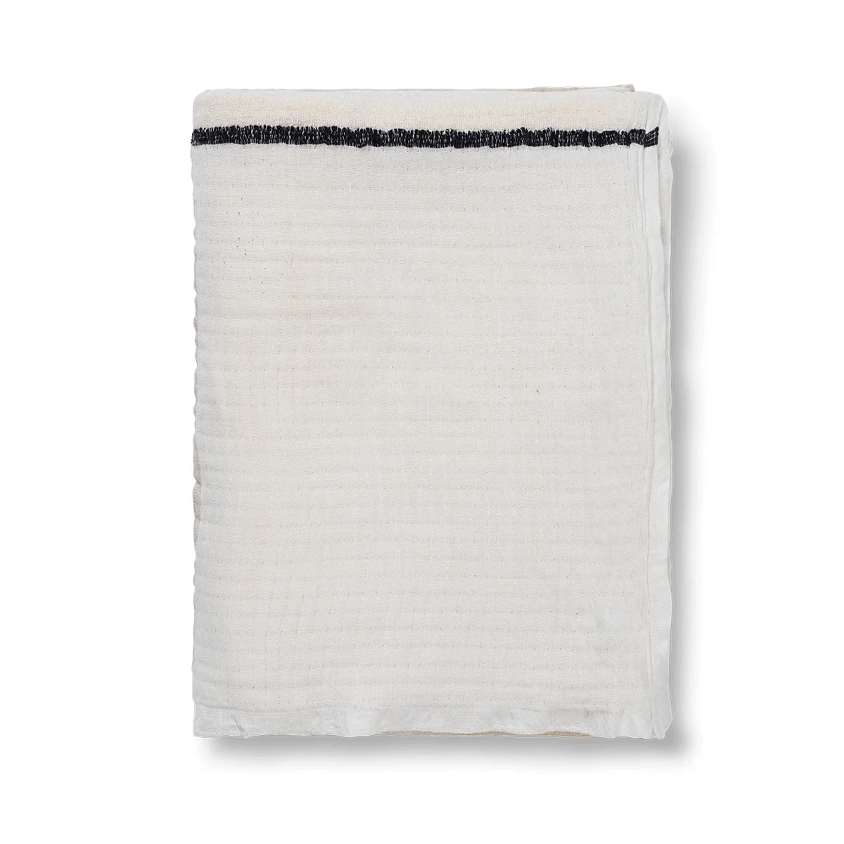 Le Dela couverture de Ferm Living, un mélange harmonieux de durabilité et de luxe. Fabriquée avec soin, cette couverture est composée de 52 % de bambou, 43 % de coton bio et 5 % de lin et offre une sensation aussi écologique que choyante.