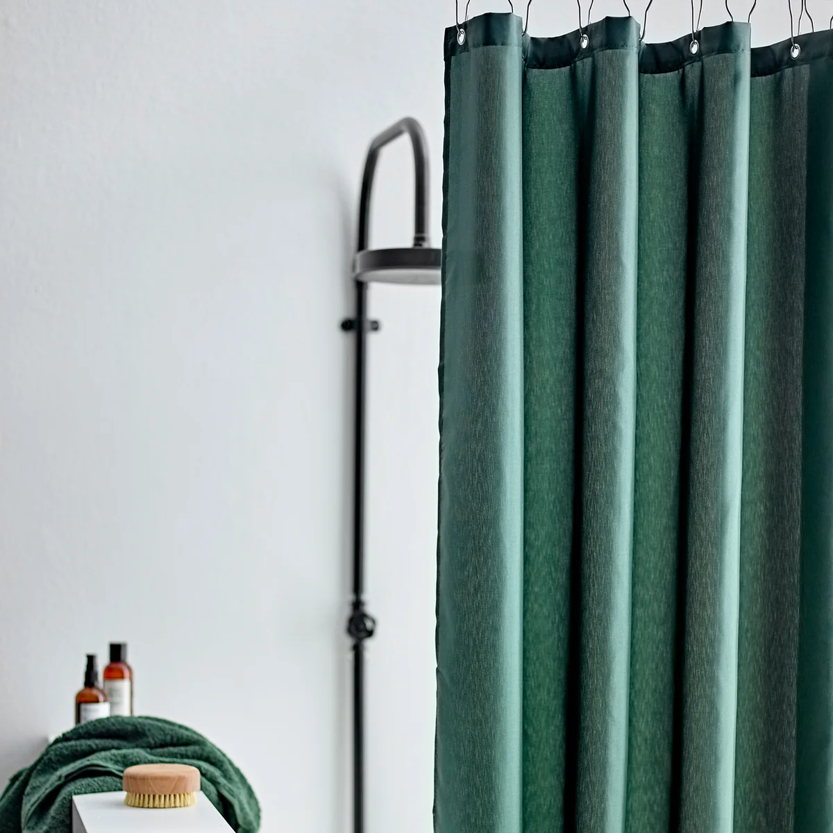 Fabriqué à 100% en polyester hydrofuge, le rideau de douche est à la fois hydrofuge et particulièrement facile d'entretien. Ainsi, le rideau peut être lavé à 40 degrés si nécessaire.