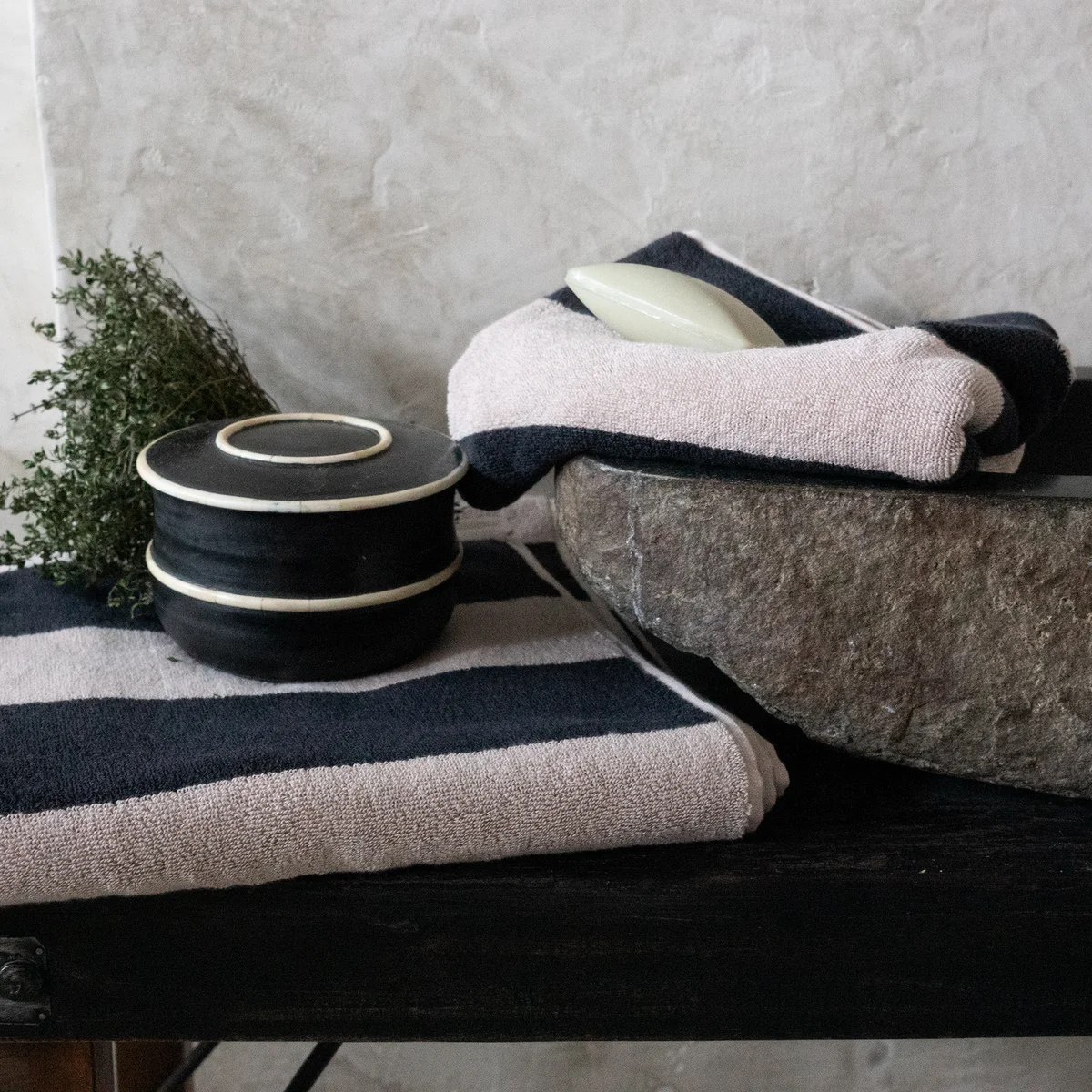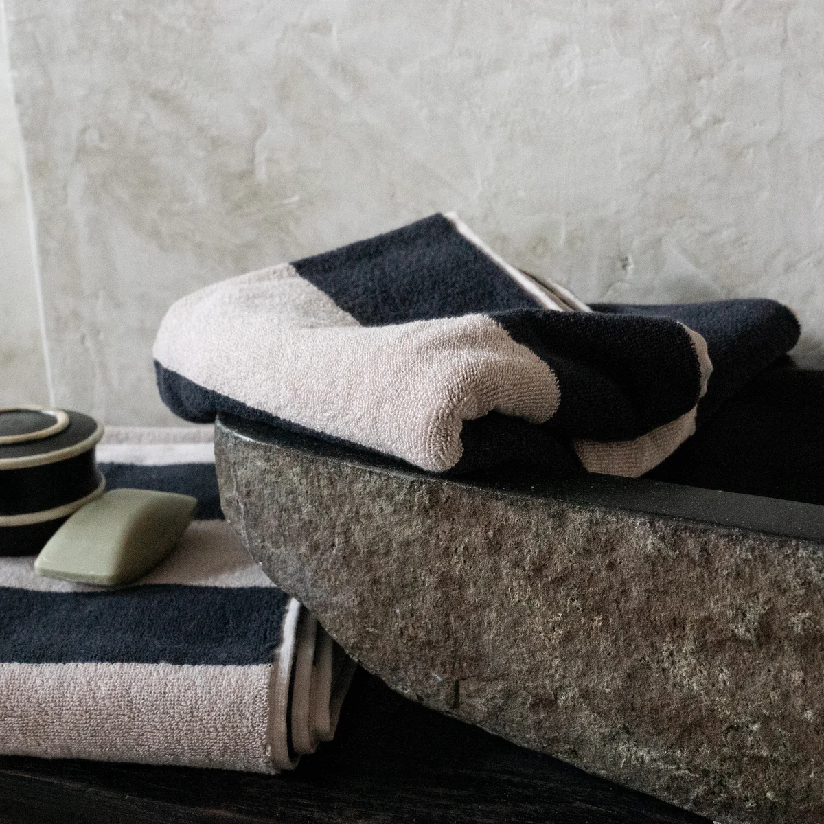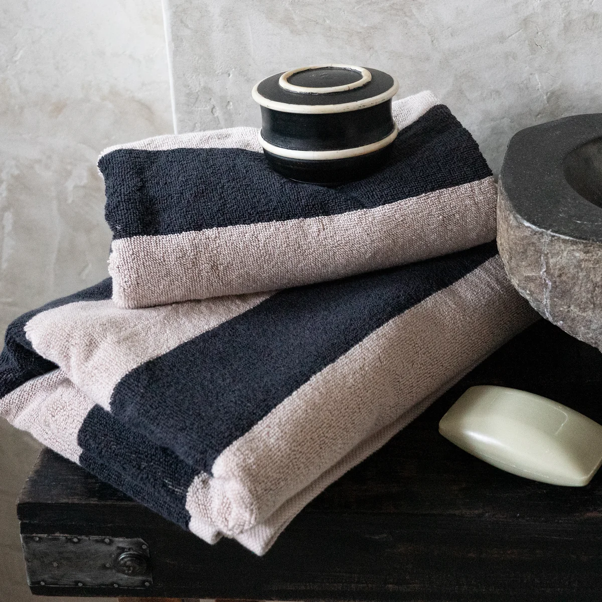HANA - Nami serviette 50 x 100 cm, chalk / charcoal rayé