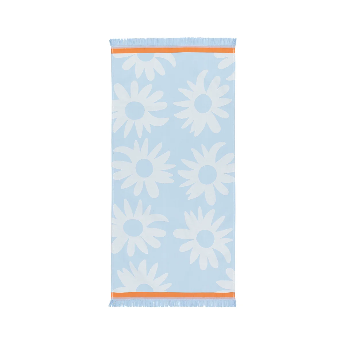 Marimekko - Rakastaa ei rakasta Serviette de hammam, 45 x 92 cm, bleu clair / blanc cassé / orange