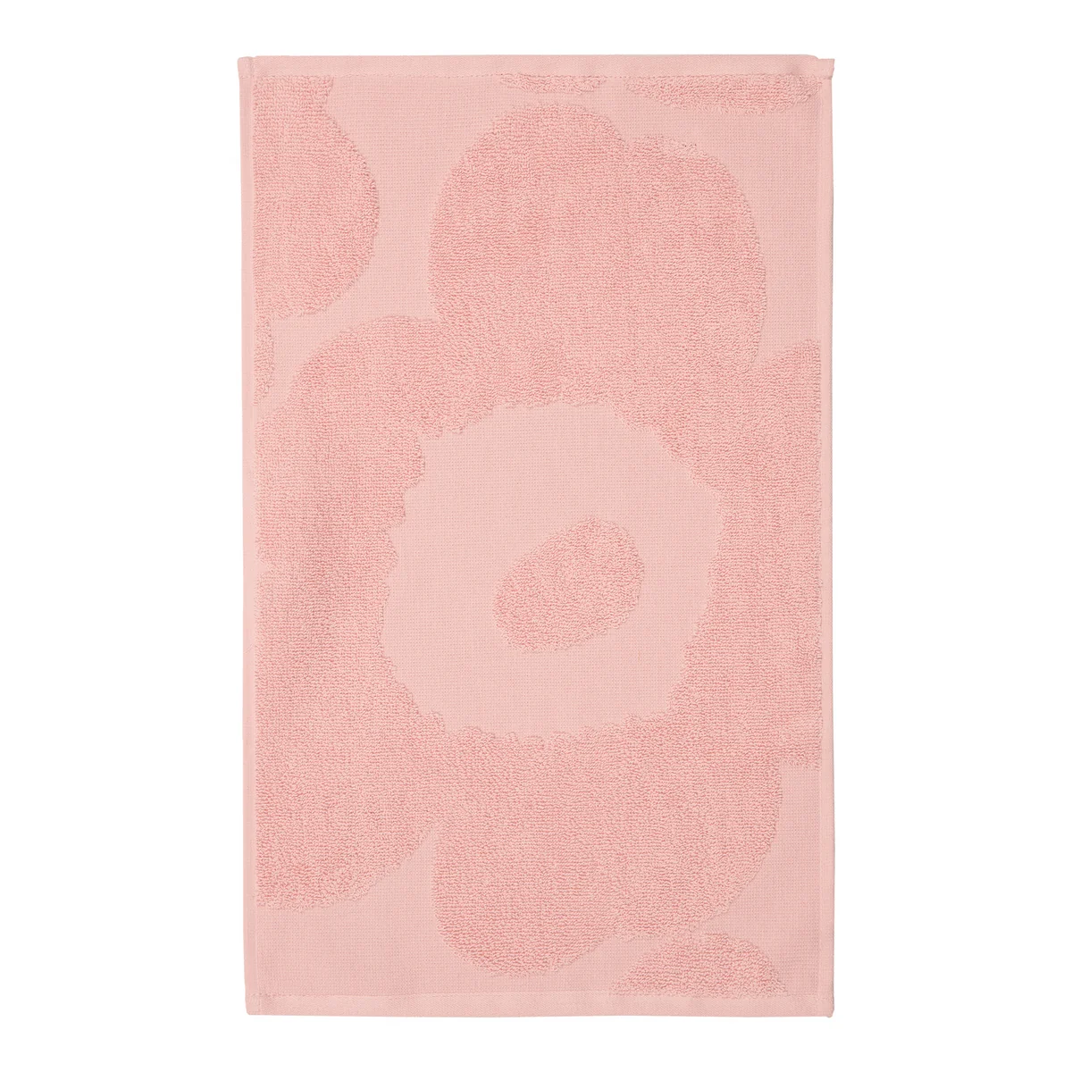 Disponible en différentes tailles, le textile de salle de bains avec Unikko est disponible sous forme de gant de toilette, de serviette, de serviette d'invité ou de serviette de bain.