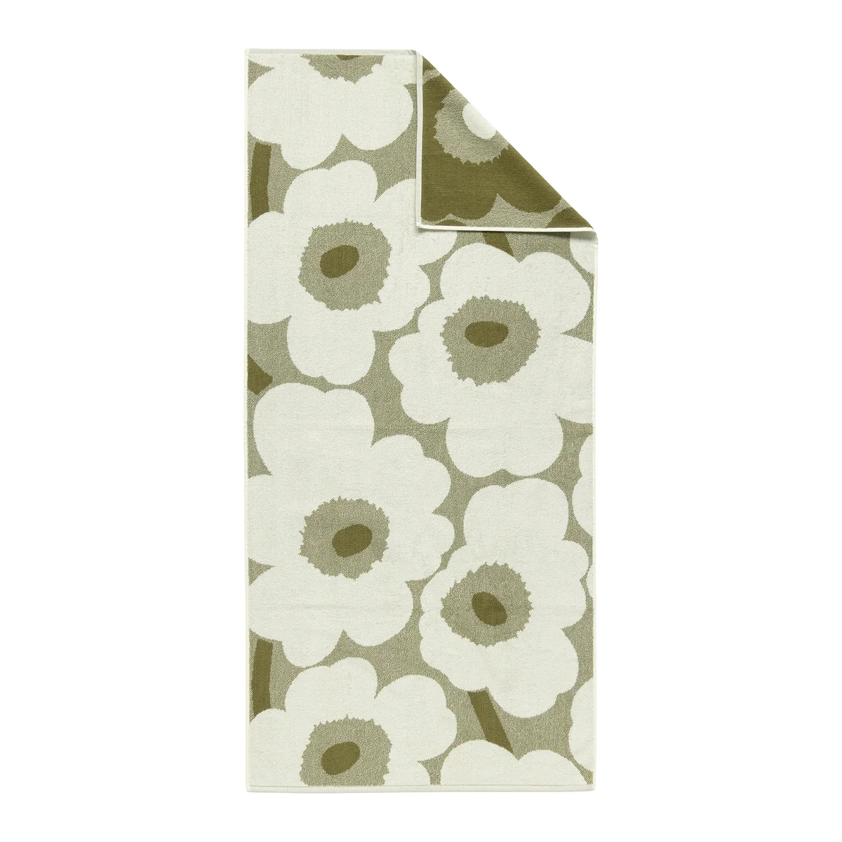 Le motif Unikko de Maija Isola est l'un des designs les plus connus de Marimekko . Dans différentes couleurs, l'imprimé floral orne désormais aussi les serviettes de bain de différentes tailles.