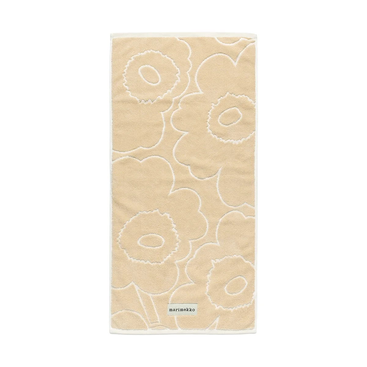 La serviette Piirto Unikko de Marimekko en éponge de coton bio épaisse se distingue par sa grande qualité et son pouvoir absorbant. Sur une face, elle présente le motif Piirto Unikko gaufré, une variante stylisée du motif floral culte créé en 1964 par Maija Isola. Le label Marimekko orne le bord inférieur et lui confère une touche d'authenticité.