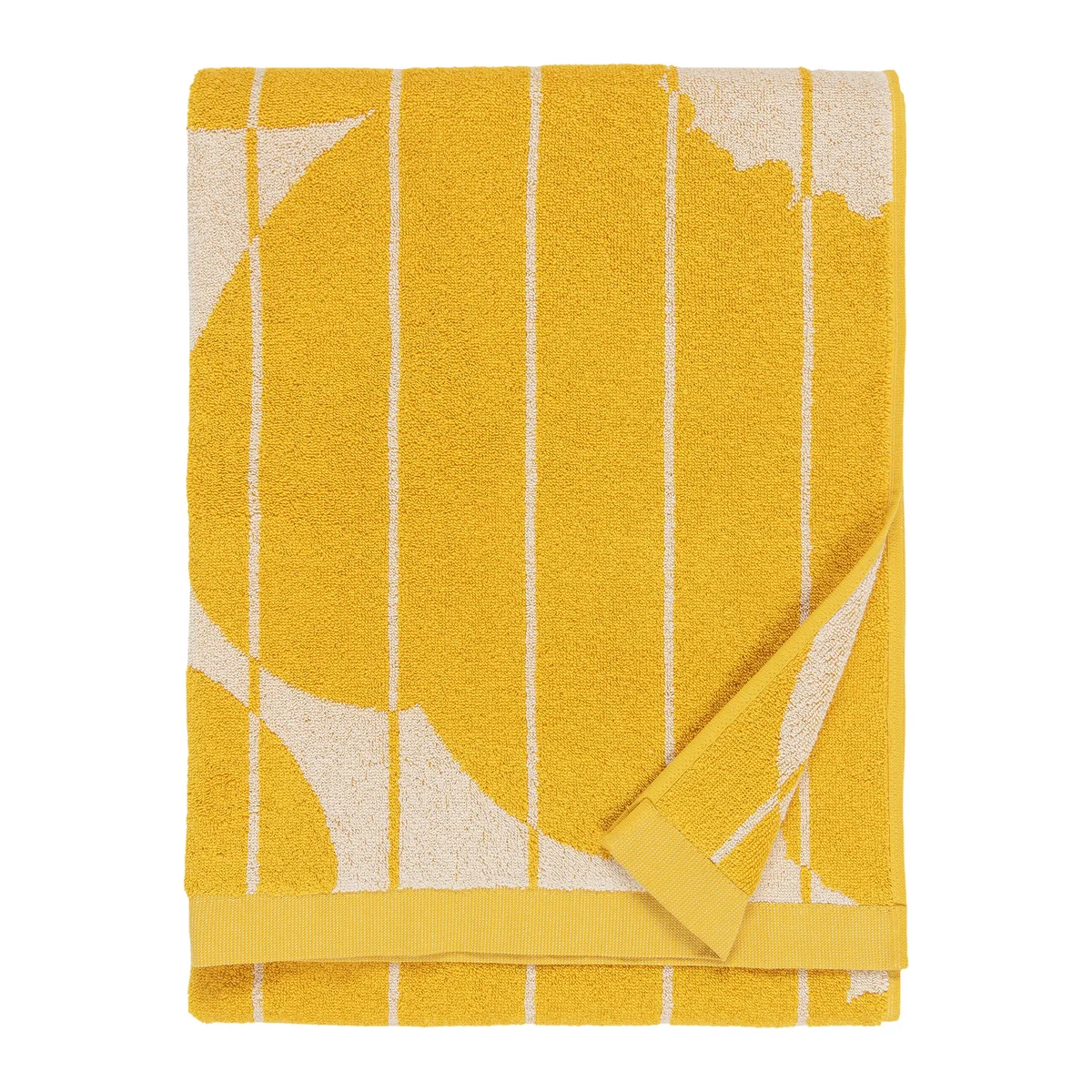 Le Vesi Unikko Serviette d'invité de Marimekko . La serviette d'invité fabriquée en éponge de coton bio présente le Vesi Unikko -Les couleurs sont inversées sur le côté opposé de la serviette. Disponible en différents modèles.