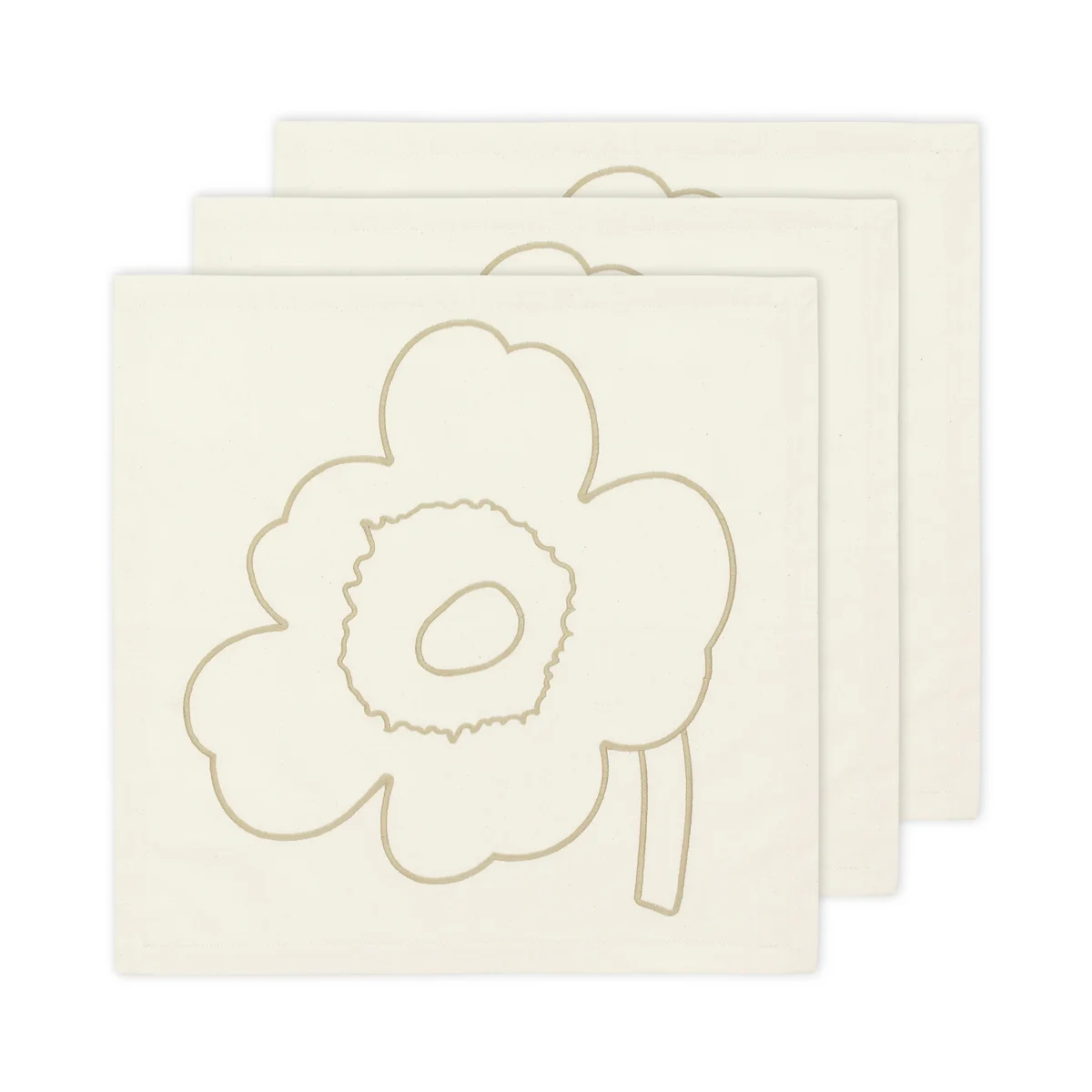 Marimekko - Piirto Unikko Satin Serviettes, 50 x 100 cm, blanc cassé / paille (lot de 3) (60th Anniversary Collection)