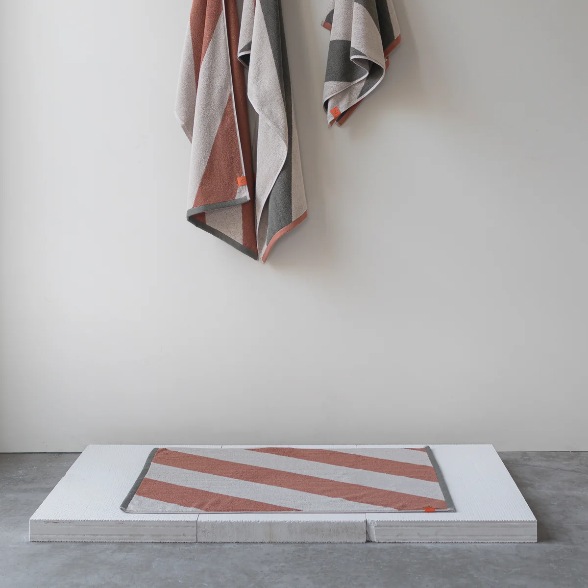 le tapis de bain Diagonal apporte une touche de fraîcheur dans la salle de bain avec ses rayures diagonales et ses combinaisons de couleurs harmonieuses. Fabriqué en coton bio certifié (OEKO-TEX® 100), le tapis offre une surface douce et antidérapante. La boucle orange décorative facilite l'accrochage et le séchage entre les utilisations.