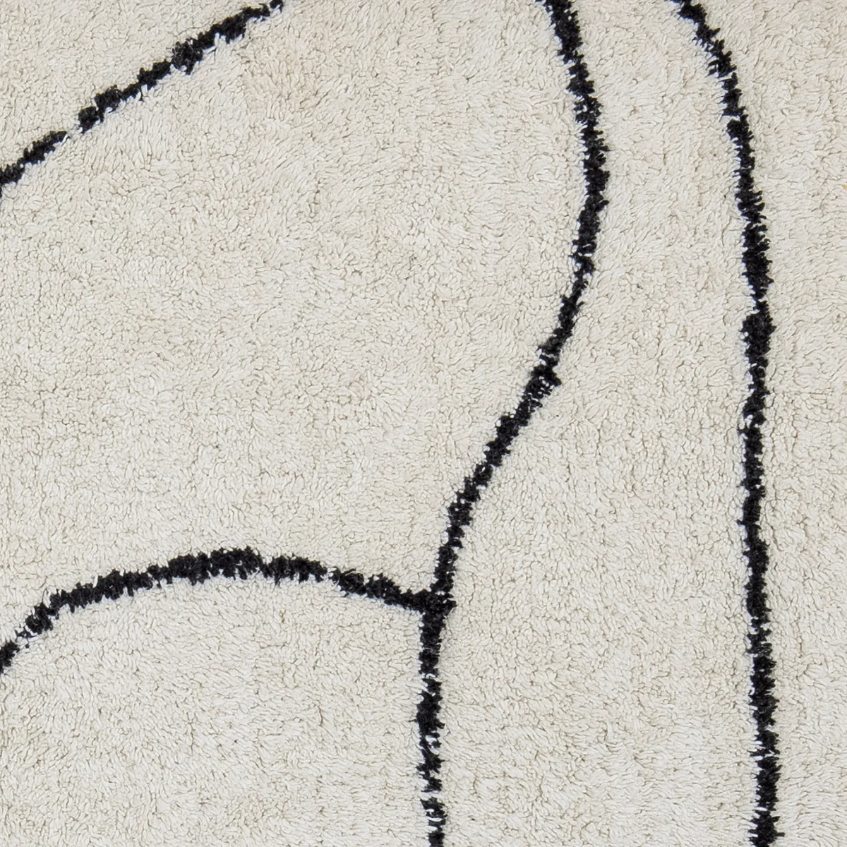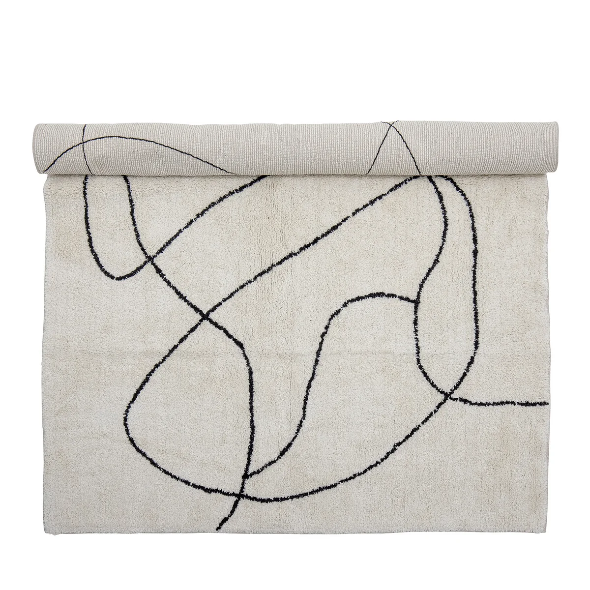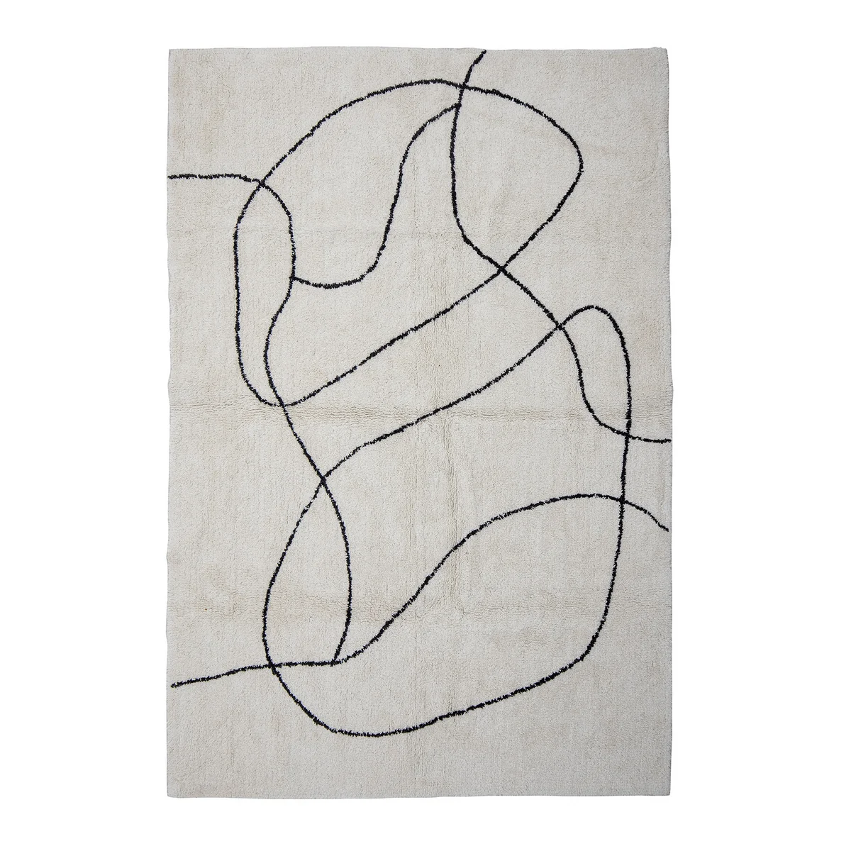 Le tapis Viga de Bloomingville est fabriqué en coton et présente un beau motif à poils dans les tons blancs et noirs. Il confère chaleur et convivialité à un intérieur nordique.
