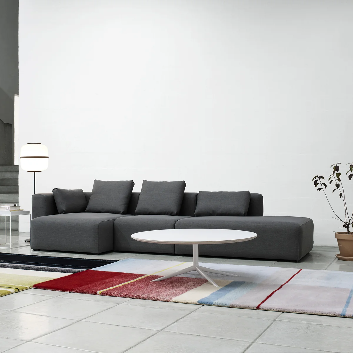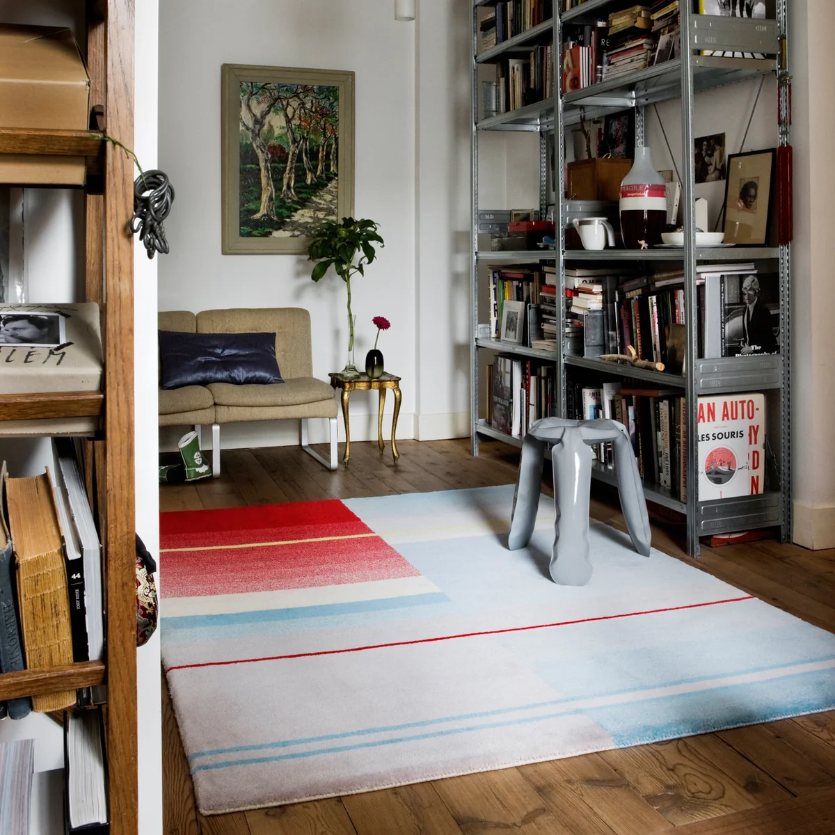 Grâce aux dégradés et motifs graphiques, Scholten & Baijings ont créé des ébauches d’apparence transparente.Chaque « Colour Carpet » possède des zones de couleur clairement délimitées, qui sont prolongées par des nuances et des lignes géométriques. Les couleurs sont selon le modèle du tapis, combinées différemment.HAY propose six versions différentes de couleurs de tapis.