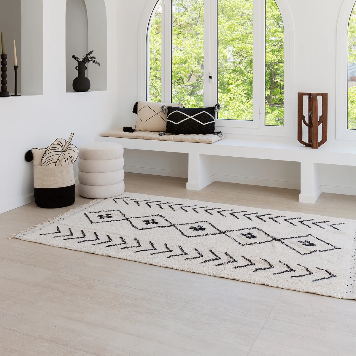 Le tapis Bereber Rhombs tapis de la maison Lorena Canals se distingue par sa qualité artisanale. Le tapis est fabriqué à partir d'une base de coton et de fibres textiles recyclées. Bereber Rhombs offre un merveilleux flair vintage avec ses broderies sur les franges et son tuftage mélangé.
