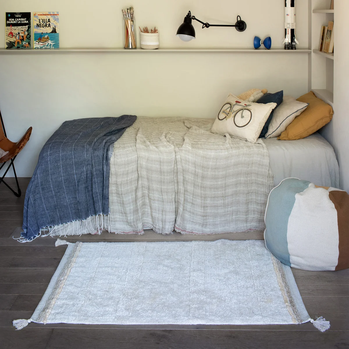 Tapis lavable en fil de coton et fibres recyclées, au design épuré.