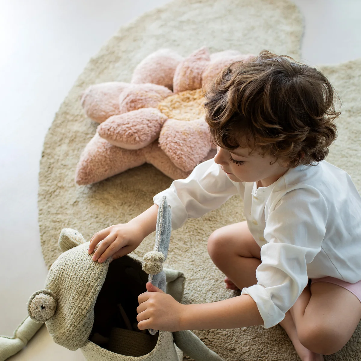 Le Puffy Lily tapis de la maison Lorena Canals enthousiasme par sa merveilleuse multifonctionnalité. Puffy Lily est à la fois un tapis et un coussin. La forme de nénuphar donne une touche de fraîcheur. Le coussin en forme de fleur peut être retiré si nécessaire. Puffy Lily est fabriqué à partir de coton et de fibres recyclées. Le coussin est rempli de polyester.