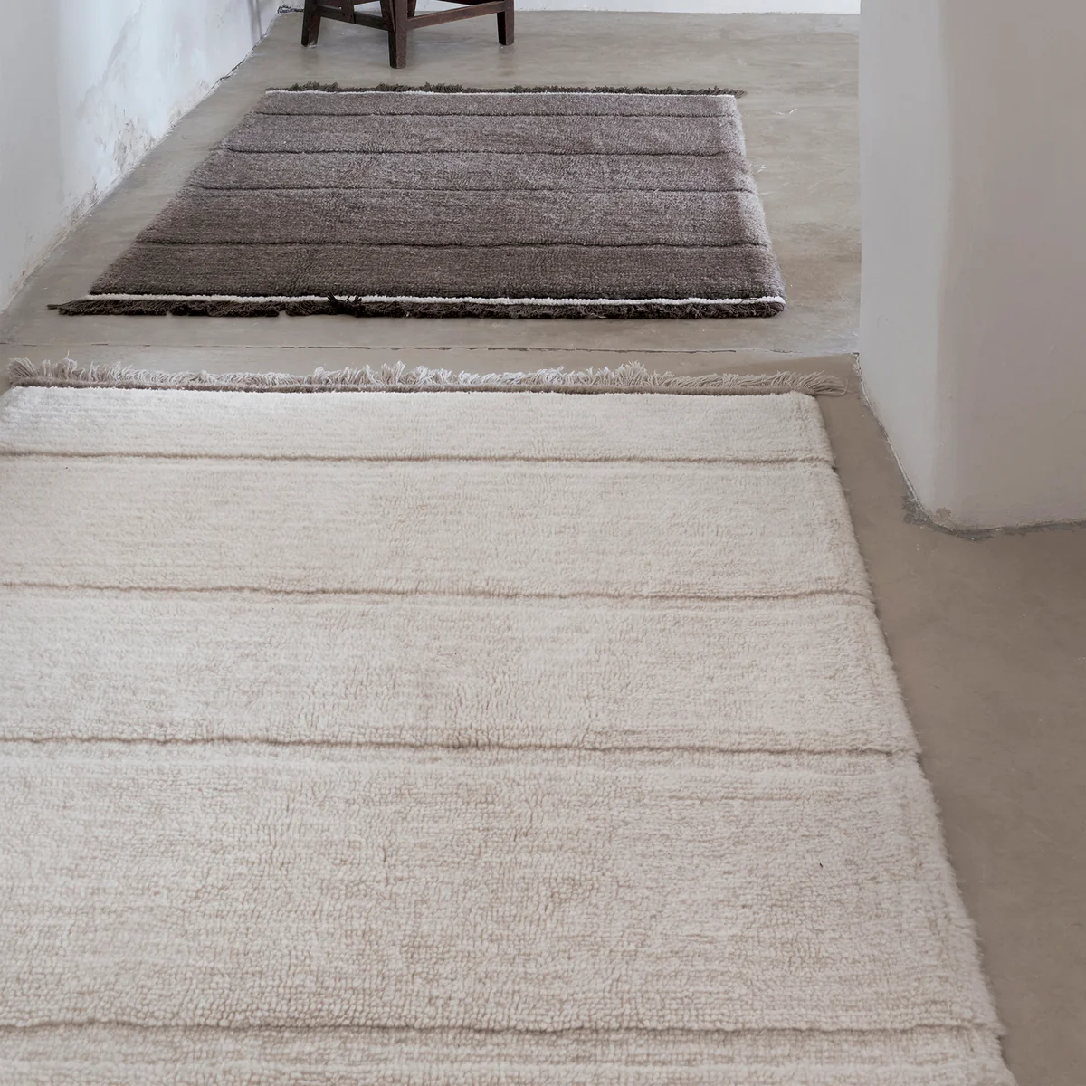 Découvrez les nuances naturelles et la douceur luxueuse de la laine moelleuse. Le design simple avec des hauteurs de poils et des franges variables confère à votre pièce un confort et un style élégants. Durable et fabriqué à la main avec de la laine certifiée RWS, ce tapis s'adapte à tous les intérieurs. Le tapis lavable est livré dans un sac en coton pratique, qui sert également de rangement, et contient une sous-couche antidérapante pour une tenue sûre.