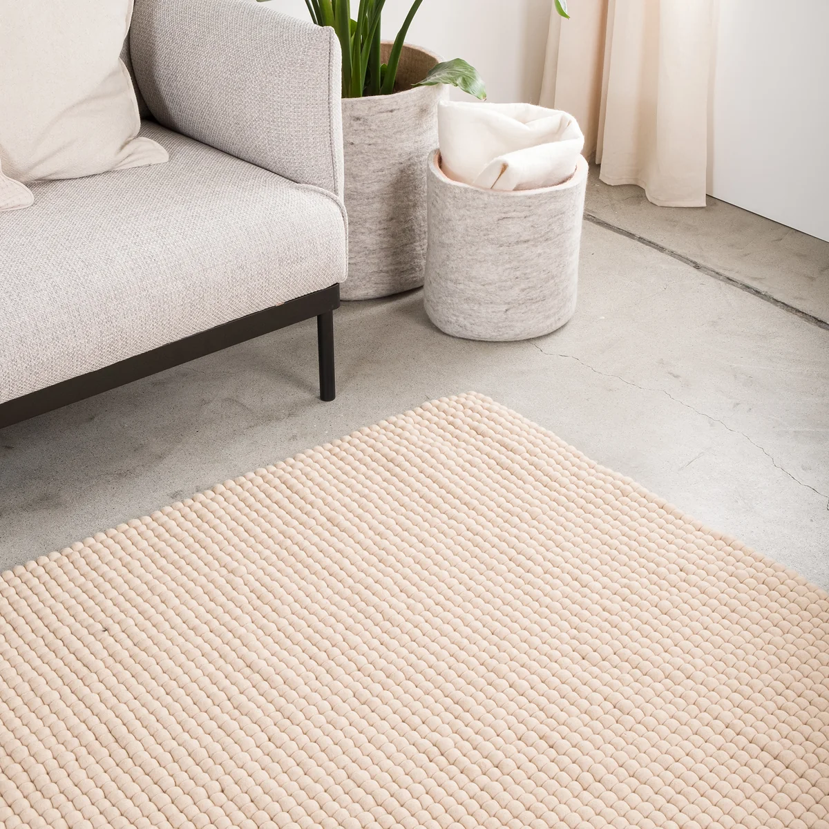 Le tapis rectangulaire en feutre Levi de myfelt allie design moderne et artisanat traditionnel. Fabriqué en laine de mouton néo-zélandaise de qualité supérieure, ce tapis se distingue par son toucher unique et sa qualité résistante. Les boules de feutre soigneusement fabriquées à la main sont disposées dans une gamme de couleurs harmonieuse, ce qui fait de ce tapis non seulement un accroche-regard, mais aussi un élément confortable pour chaque pièce. L'utilisation de matériaux naturels permet non seulement de créer un produit durable, mais aussi de soutenir une atmosphère chaleureuse dans l'habitat. Le tapis en boule de feutre Levi de myfelt incarne donc non seulement l'élégance esthétique, mais aussi la valeur de la tradition artisanale et le respect de l'environnement.