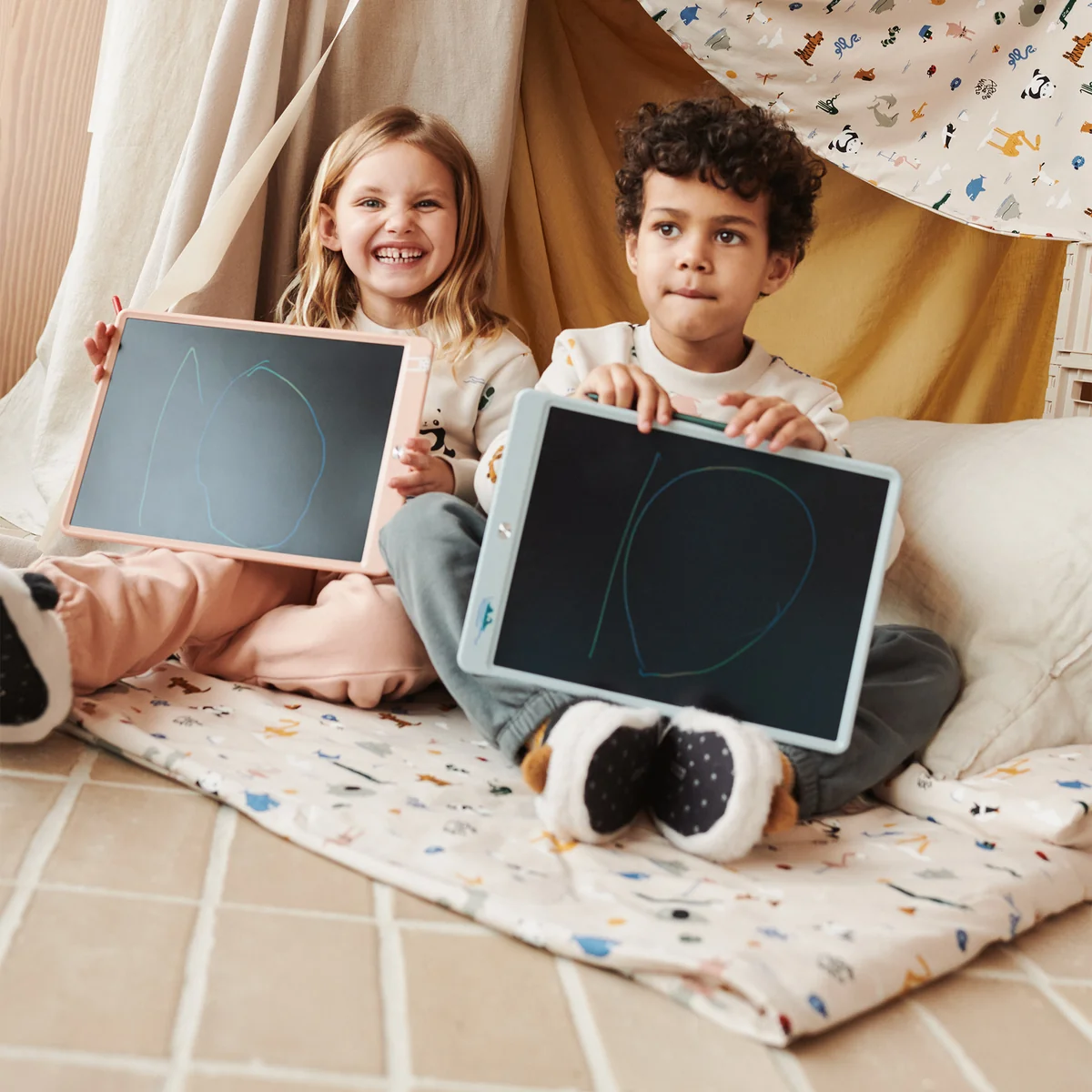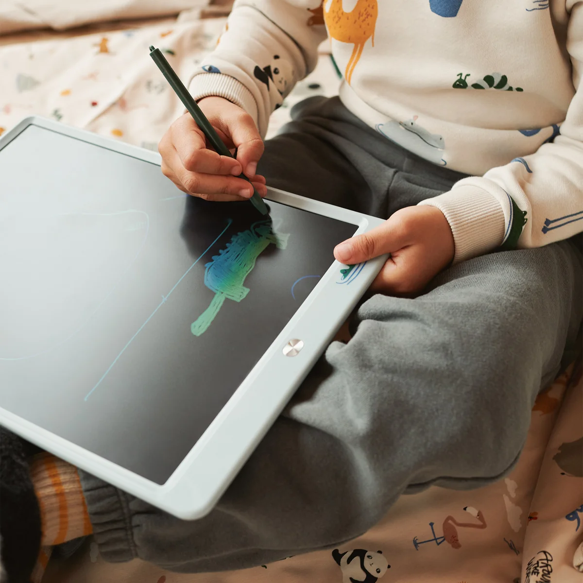 Avec le tableau à dessin LCD Zora, les enfants redécouvrent leur créativité, que ce soit à la maison, en déplacement ou en vacances. La surface sensible à la pression réagit à chaque trait et crée des lignes de différentes épaisseurs - sans peinture, papier ou chaos. Une simple pression sur un bouton permet d'effacer l'œuvre d'art ou de la sauvegarder à l'aide du curseur, ce qui permet aux petits artistes de créer encore et encore. Une alternative écologique et réutilisable au stylo et au papier, qui stimule à la fois l'imagination et la motricité fine.