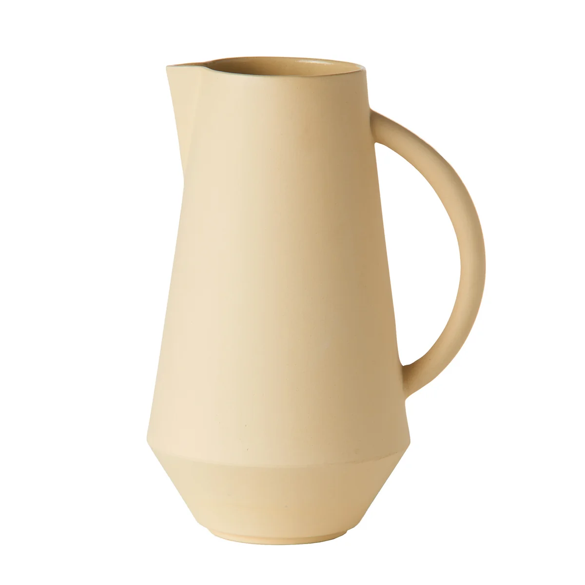 La carafe en céramique de Schneid est colorée avec différents pigments et émaillée uniquement à l'intérieur afin de conserver une surface en céramique brute et naturelle à l'extérieur. La carafe est idéale pour le jus, le thé, le café ou le cacao et peut être combinée avec n'importe quelle pièce de la série de vaisselle Unison . Cette dernière a d'ailleurs remporté le German Design Award 2017.